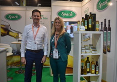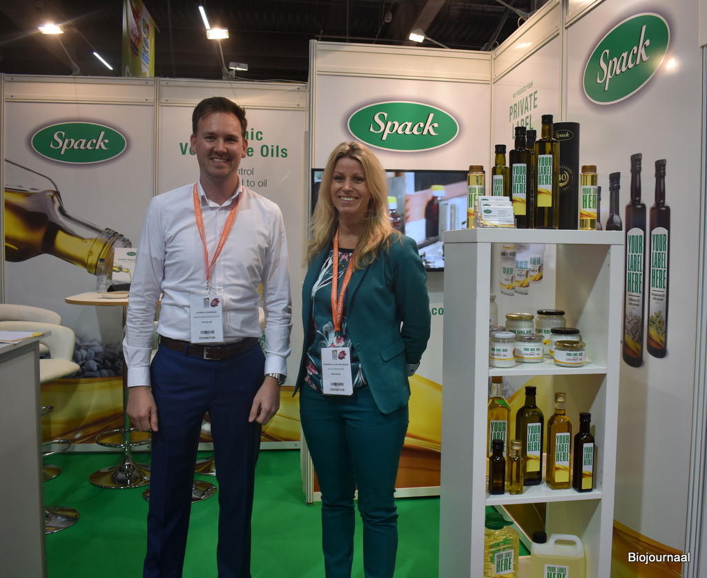 Spack heeft verschillende nieuwe producten en verpakkingen bij die Patrick Voordijk en Marieke Klijn-van Roon tonen op de beurs. “Onze belangrijkste innovatie is de squeezer als verpakking”, vertelt Patrick. “Daarnaast hebben we bijvoorbeeld ook onze Marasca-lijn uitgebreid met een verpakking van 100 ml.”