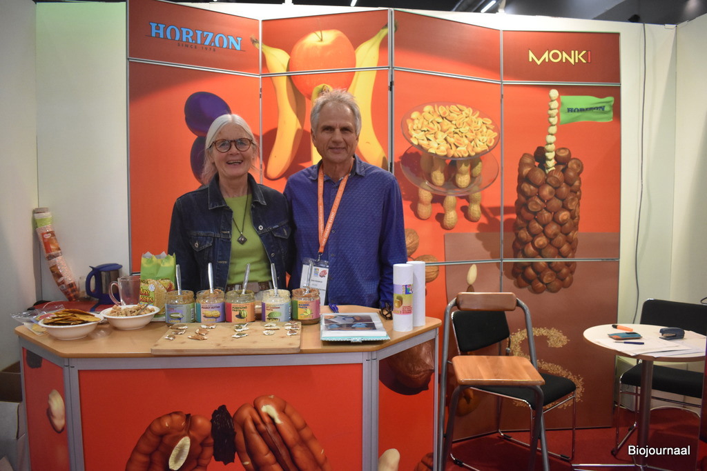 Jeroen en Alise Kramer van Horizon Natuurvoeding zijn vooral aanwezig om het aanbod te laten zien. “Onze distributeurs verkopen niet alles wat we aanbieden, we willen hier vooral ons aanbod laten zien.”