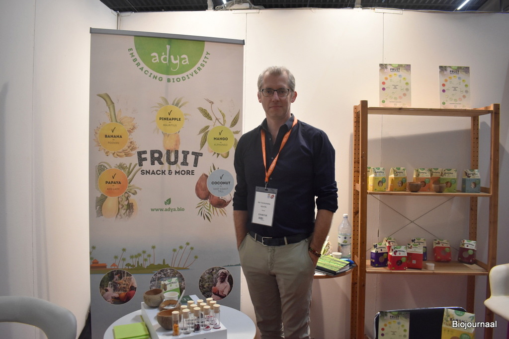 Karl Vanderplaetse van Adya Bio heeft een aanbod gevriesdroogd fruit. “De nieuwste producten zijn jackfruit, dat veel proteïnen bevat, gevriesdroogde aardbei, framboos en avocado”, vertelt Karl.