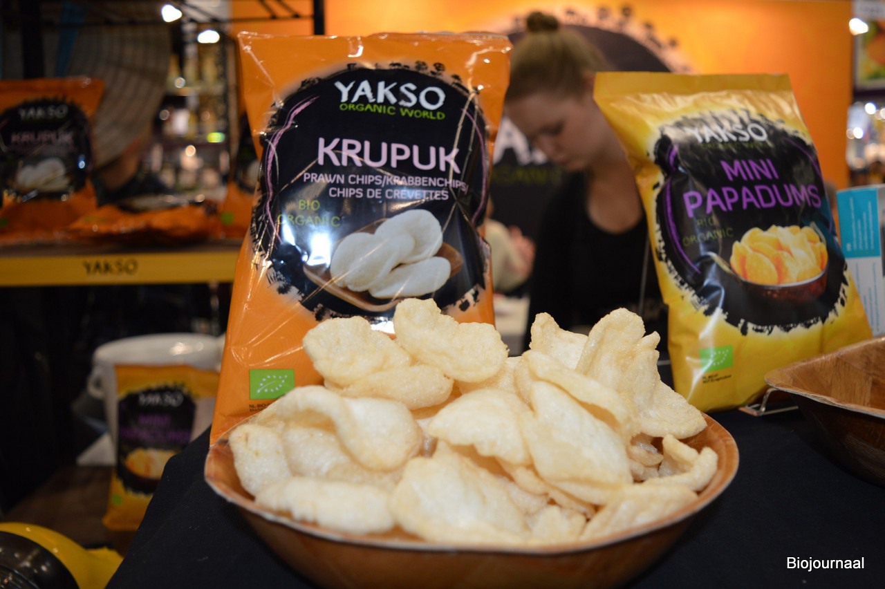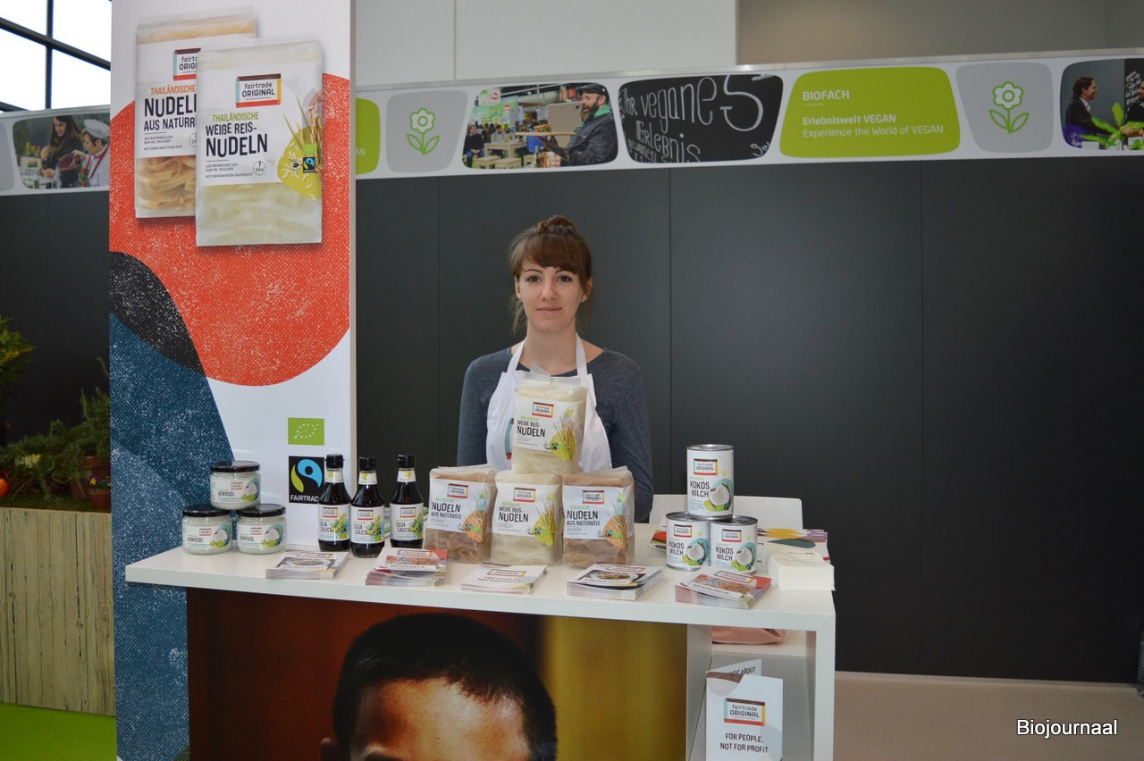 Anna stond namens Fairtrade Original op de beurs, haar Nederlandse collega's waren even niet in de buurt. Nieuw zijn de rijstnoedels. "Deze zijn nu ook biologisch. Steeds meer van onze bestaande leveranciers en producenten schakelen met onze hulp om naar de biologische werkwijze."