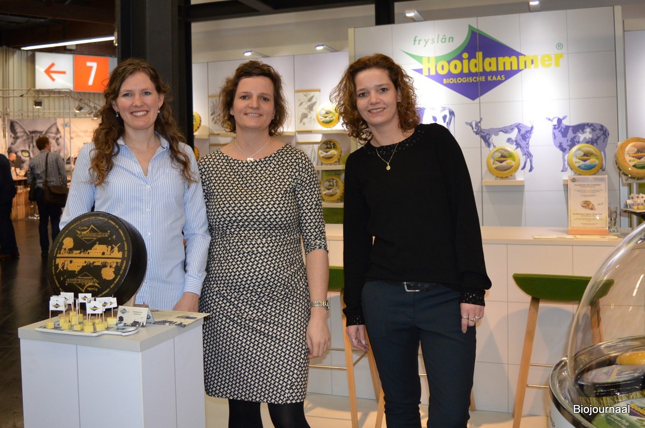 Marije ten Berge, Miriam Stutz en Joke Heerema staan achter de nieuwste creatie van Hooidammer in de stand van Kaasmakerij Henri Willig. Deze kaas is het eerste product in de nieuwe Hooidammer Supreme-lijn.