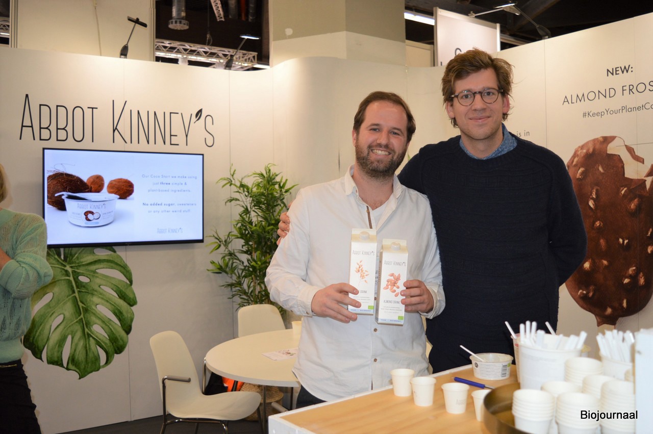 Gijs van Maasakkers en Joost Esser bij Abbot Kinney's. Nieuw zijn de Almond en Oat drink in een literpak. Abbot Kinney's verhuisde van Hal 5 naar Hal 8. Gijs daarover: "Deze hal bevalt ons heel goed, er is een goede doorloop, mede dankzij het feit dat de Novelty Stand in deze hal te vinden is. Ook geeft het ons de gelegenheid om veel contacten met Duitse bezoekers te leggen."