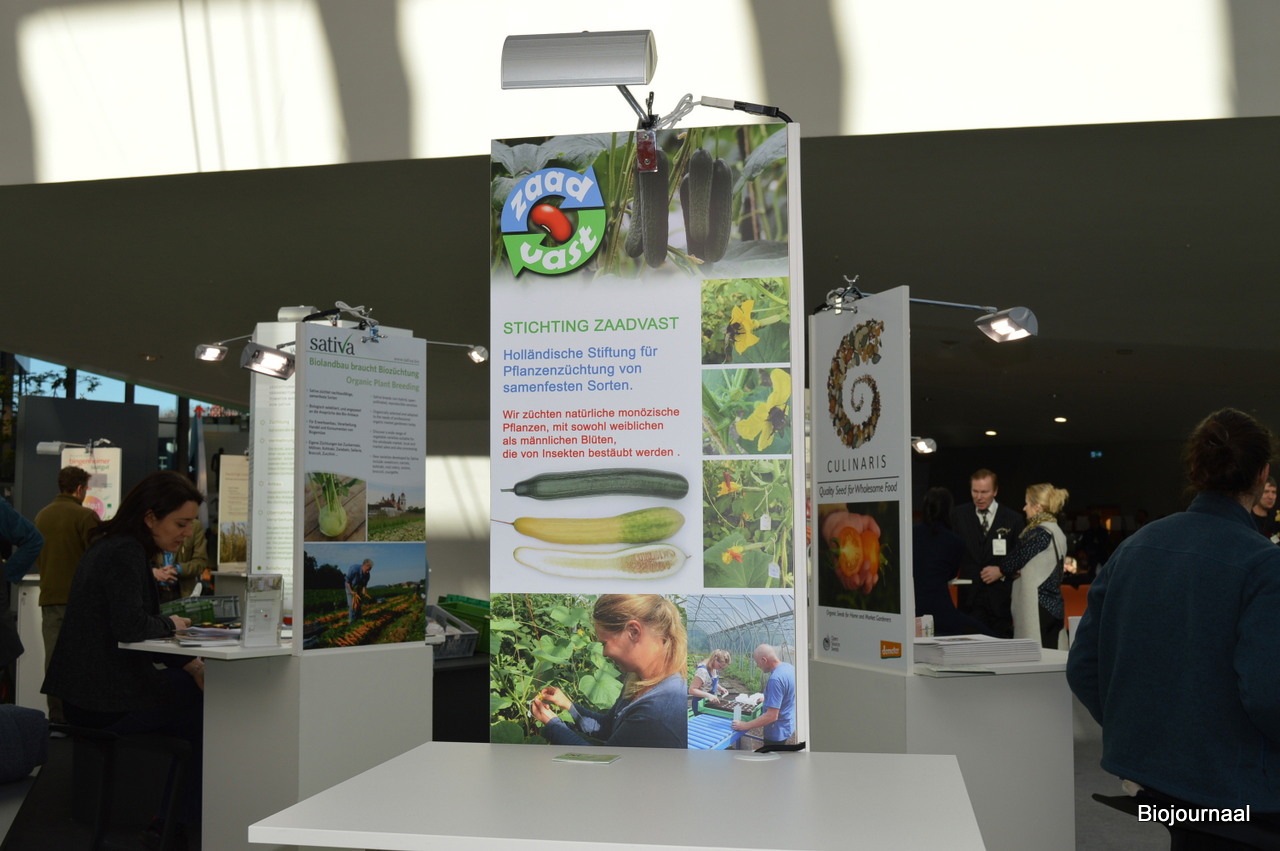 Jan Velema vertelde net na de 'Mitte' ingang van het beursgebouw alles over de activiteiten van de Stichting Zaadvast.