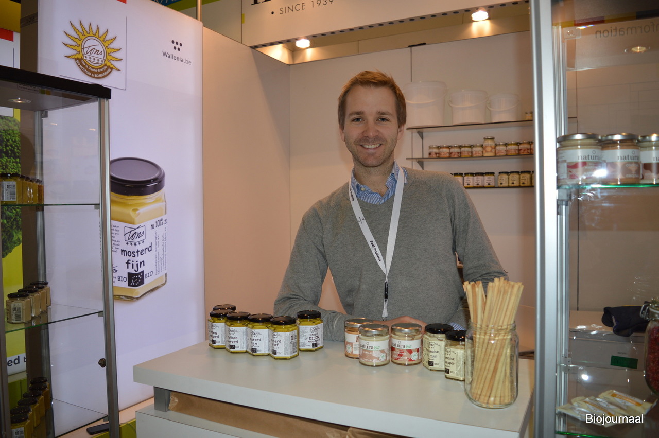 Op het Belgische Paviljoen een stand met een erg Nederlands tintje: Tons Mosterd en Heerlijkheden was terug te vinden bij Natura. Ton Schroer, oprichter van Tons Mosterd en Heerlijkheden in Zierikzee vond inmiddels bijna een jaar geleden in Arthus de Bousies (oprichter Natura) zijn opvolger. De productie vindt nog altijd plaats in Zierikzee. Op de foto: Geoffrey Lamarche.