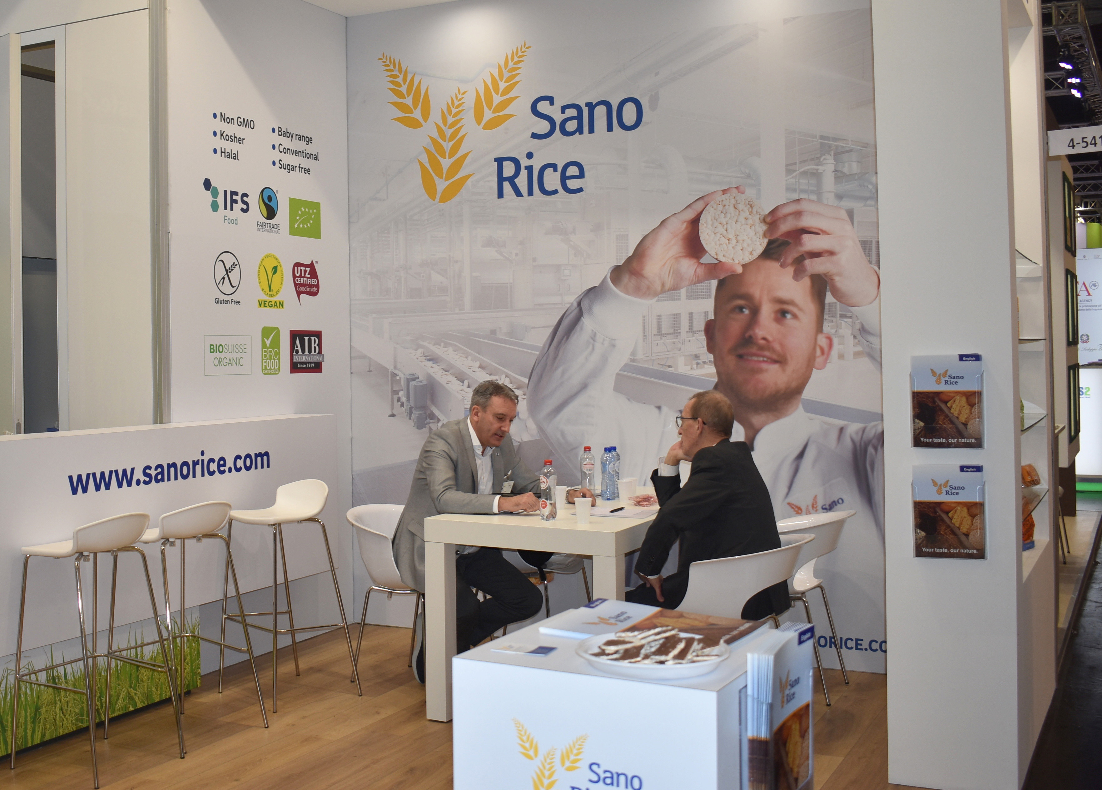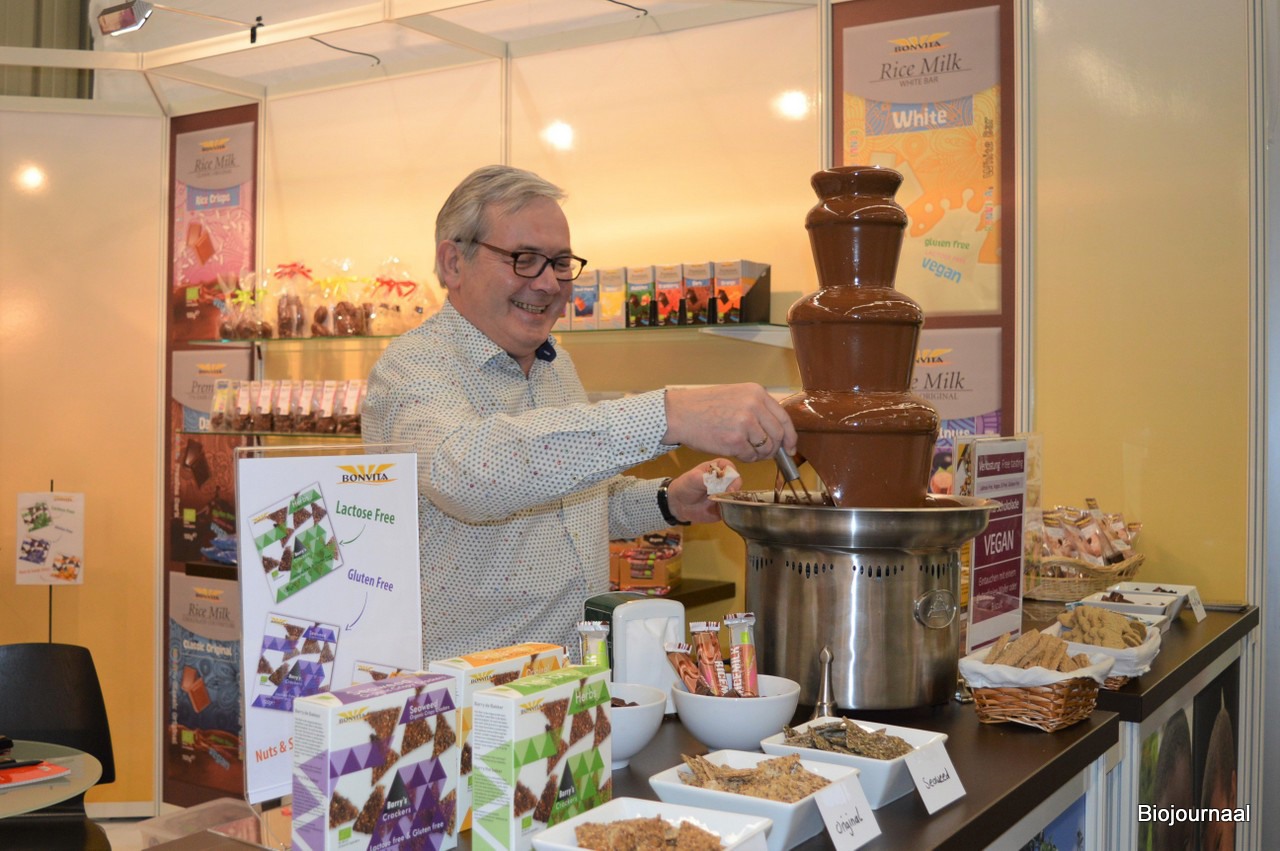 Op de stand van SanoRice heerste vrijwel aan een stuk door bedrijvigheid. Het bedrijf behoort tot de grotere spelers op het gebied van biologische rijst-, maïs- en meergranenwafels.