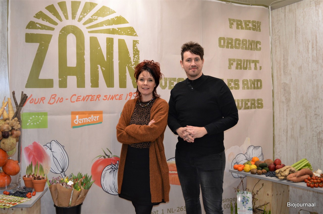 Astrid Rog en Geoffrey Harreman bij Bio-Center ZANN. Geoffrey: "We hebben al veel nieuwe contacten opgedaan en veel leveranciers gesproken. We verwachten dat onze verhuizing halverwege maart een feit zal zijn."