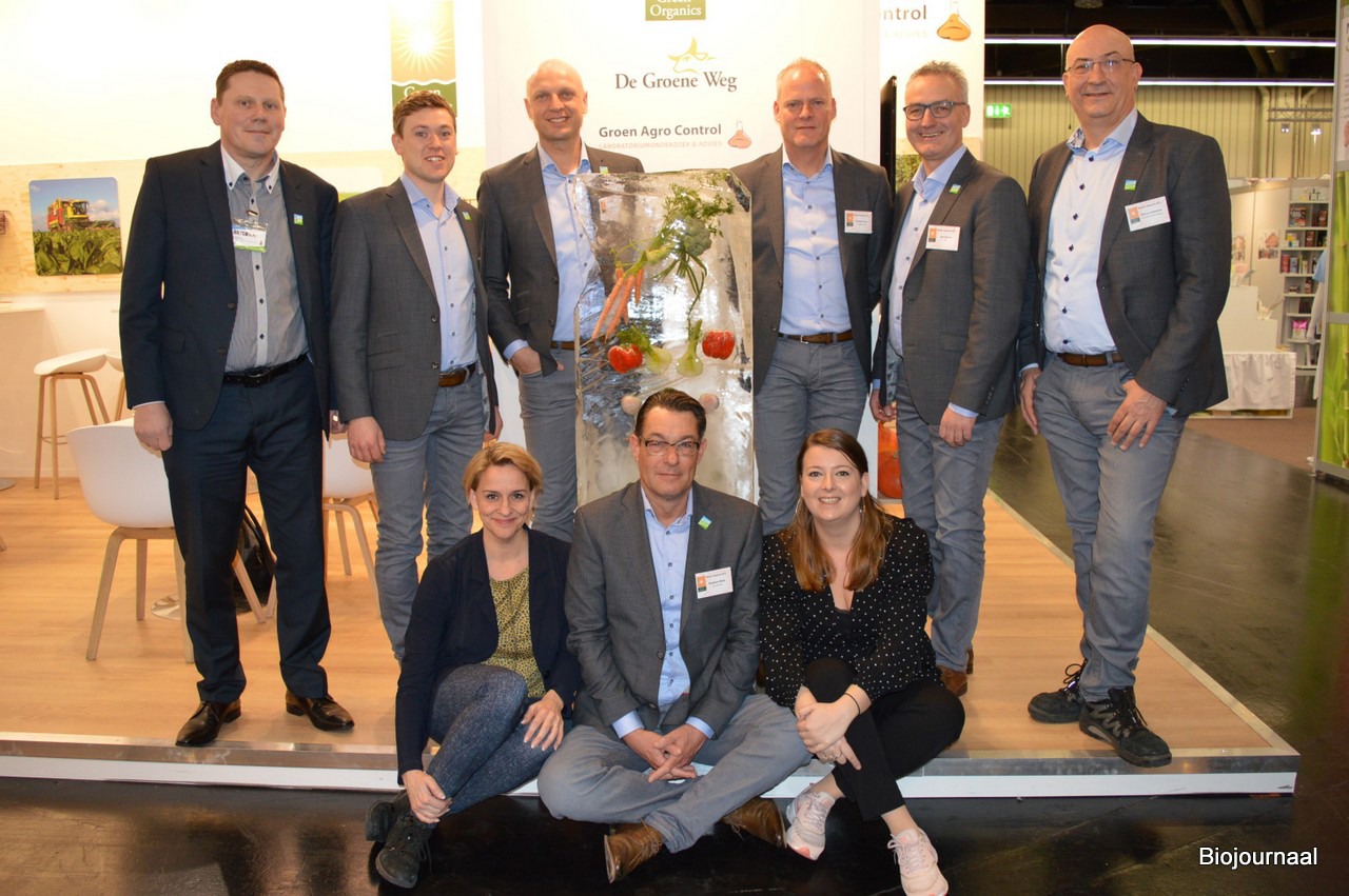 Het is inmiddels een vertrouwd gezicht: de volledige standbemanning van Green Organics, Groen Agro Control en De Groene Weg op een groepsfoto.