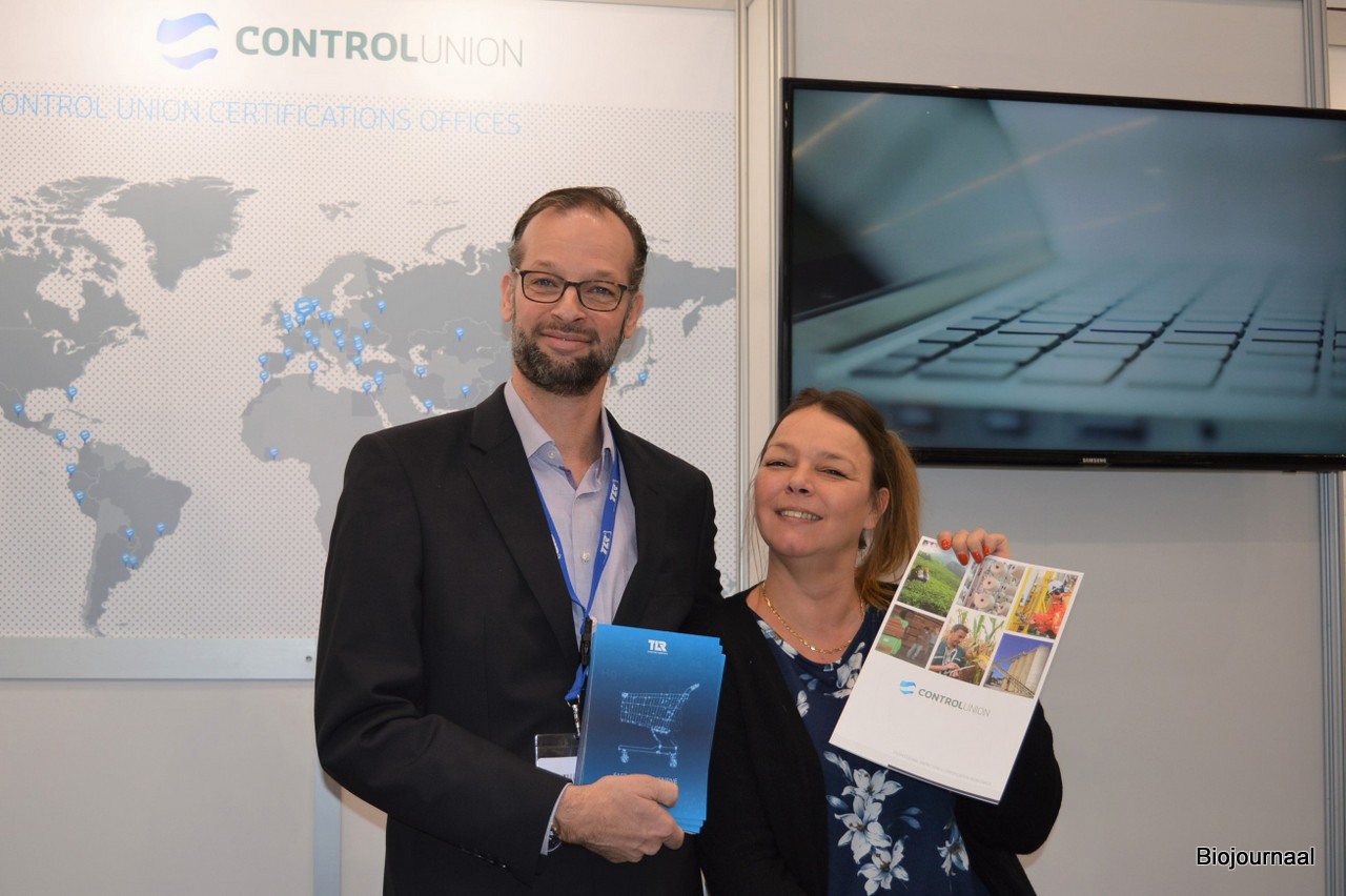 Arno van der Heijden van TLR houdt Conchita Kleveringa van Control Union Certifications gezelschap op deze foto.