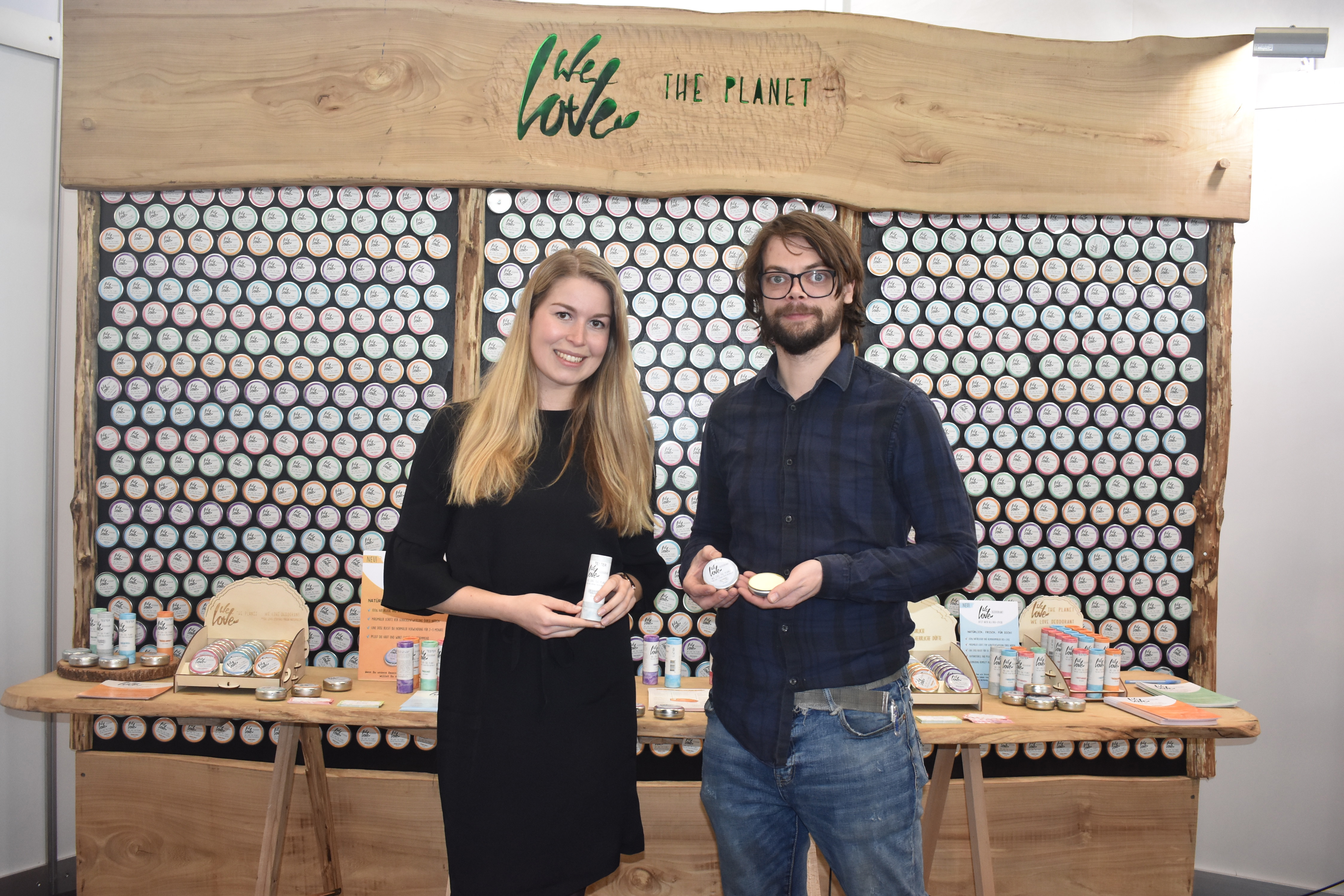 Melodie Zöllner en Ate Gerritsen van We Love the Planet. Het bedrijf was naar Neurenberg afgereisd om de So Sensitive-deodorant te presenteren. Dit product is zowel in stick- en sprayvorm beschikbaar, onder meer in Duitsland.