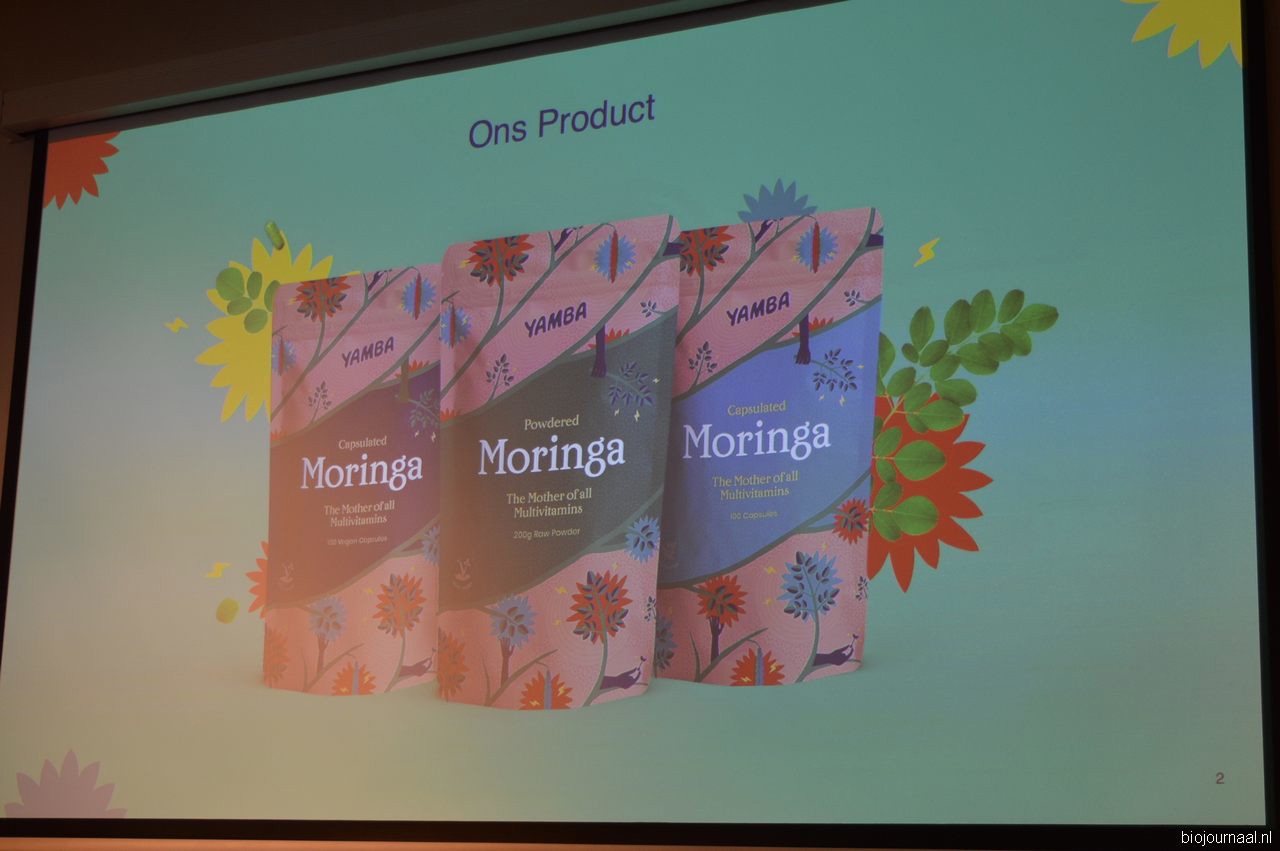 Maxime Rozestraten vertelde vervolgens namens Yamba Health meer over Moringa. Yamba wil meer bekendheid aan Moringa geven, volgens Maxime 'the mother of all multivitamins'.
