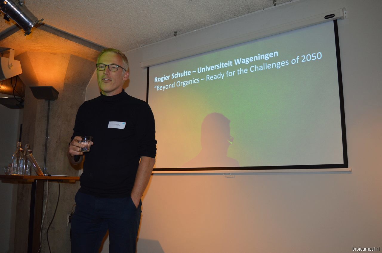 De daaropvolgende presentatie van Rogier Schulte zorgde voor stof tot nadenken. "Het is tijd voor een radicale verandering in de landbouw", aldus de hoogleraar Farming Systems Ecology aan de Wageningen Universiteit.