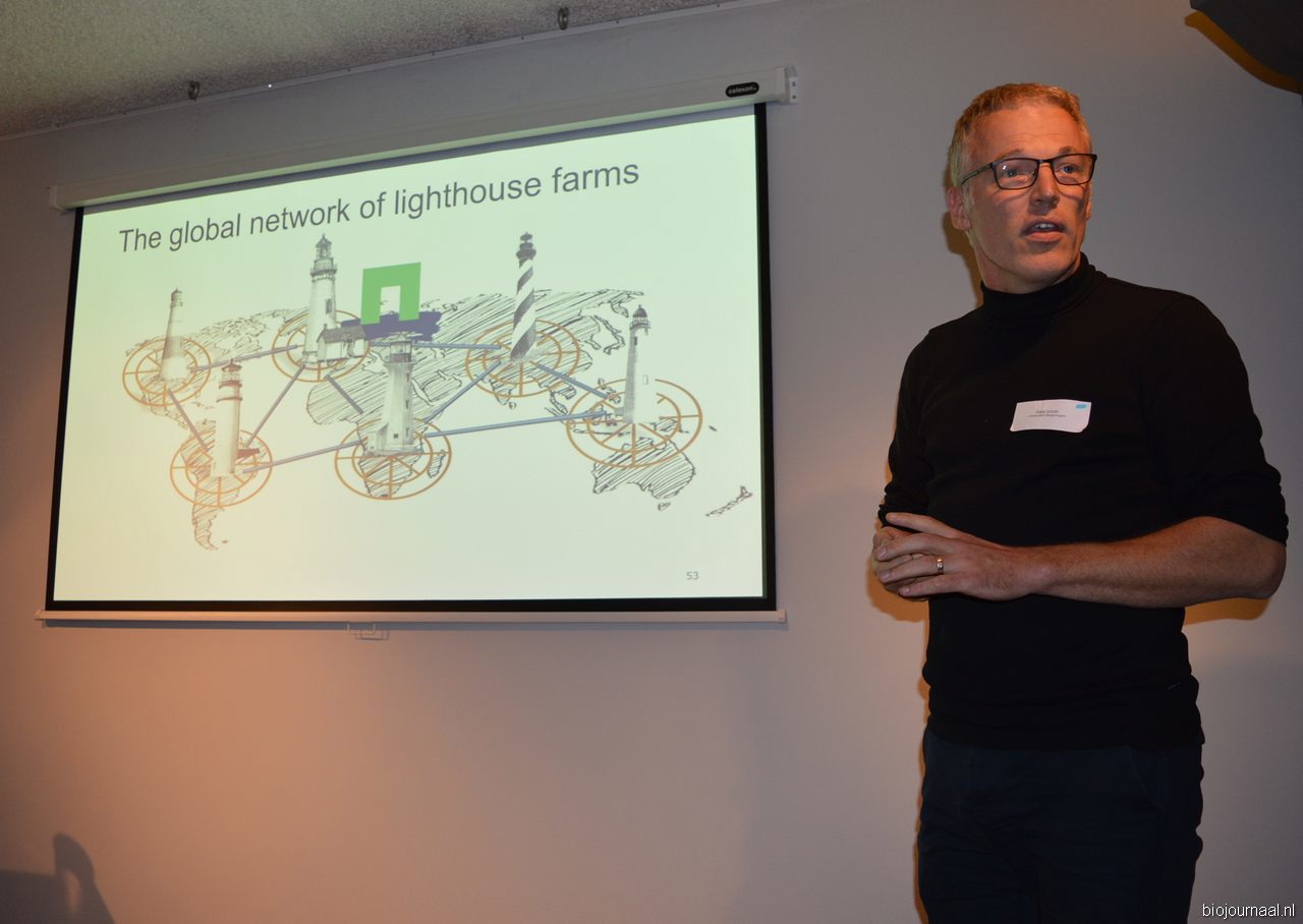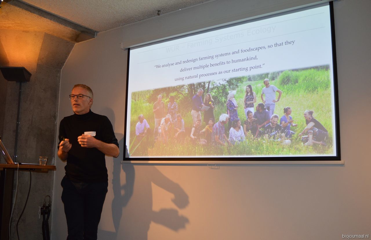 Hij vertelde hoe hij met de Pharming Systems Ecology Group bezig is om landbouwsystemen te analyseren en herontwerpen zodat ze meerdere voordelen voor de mensheid opleveren. Hierbij vormen natuurlijke processen het uitgangspunt.