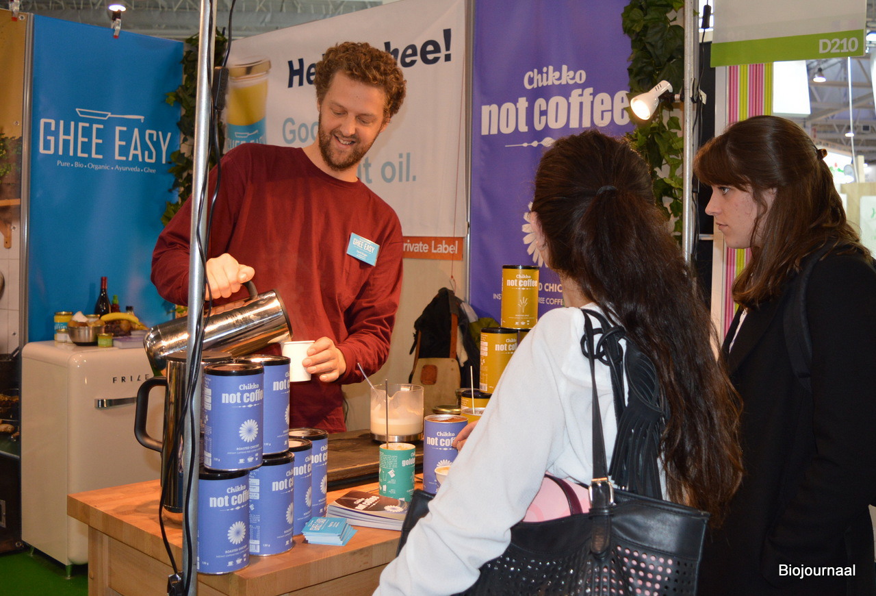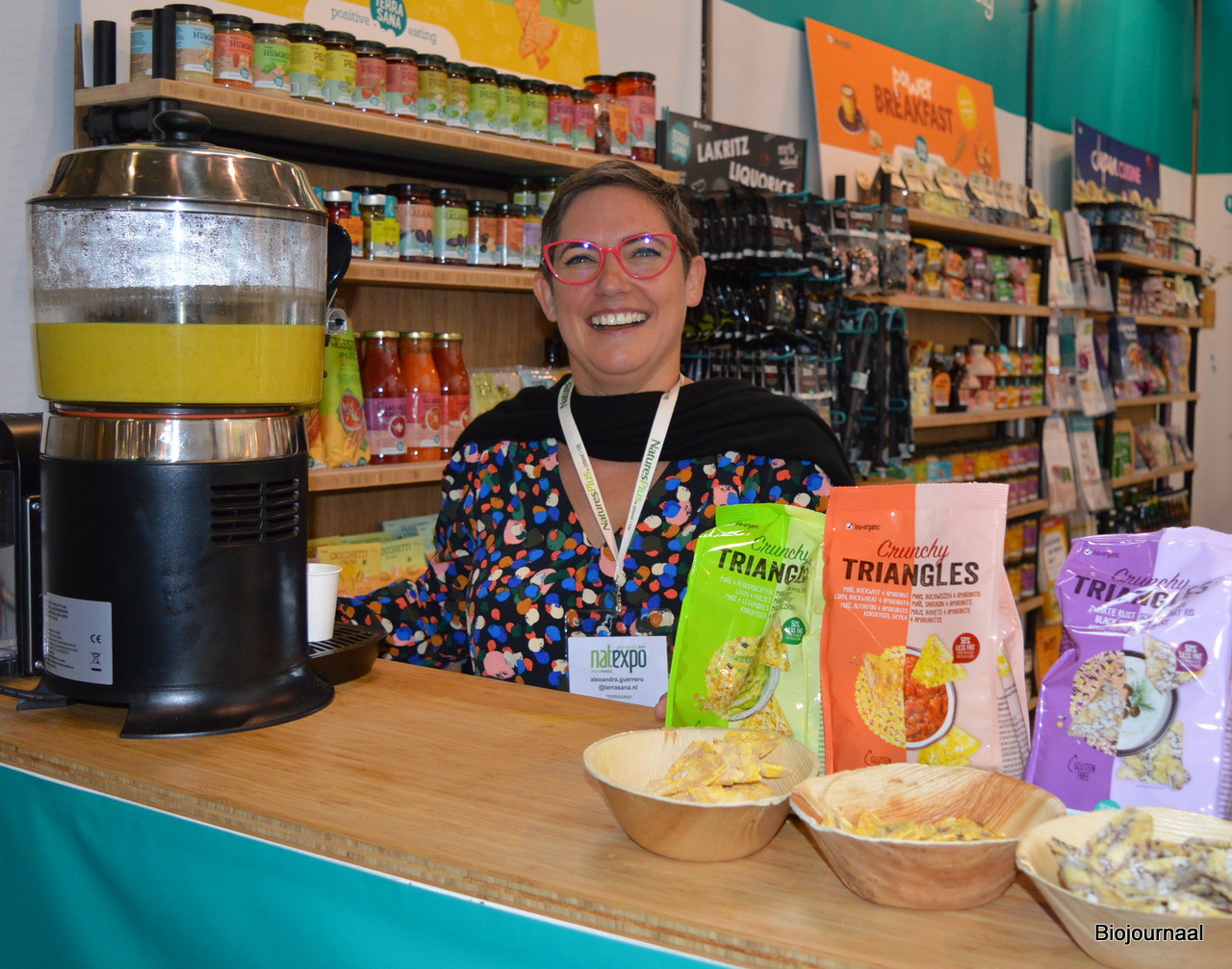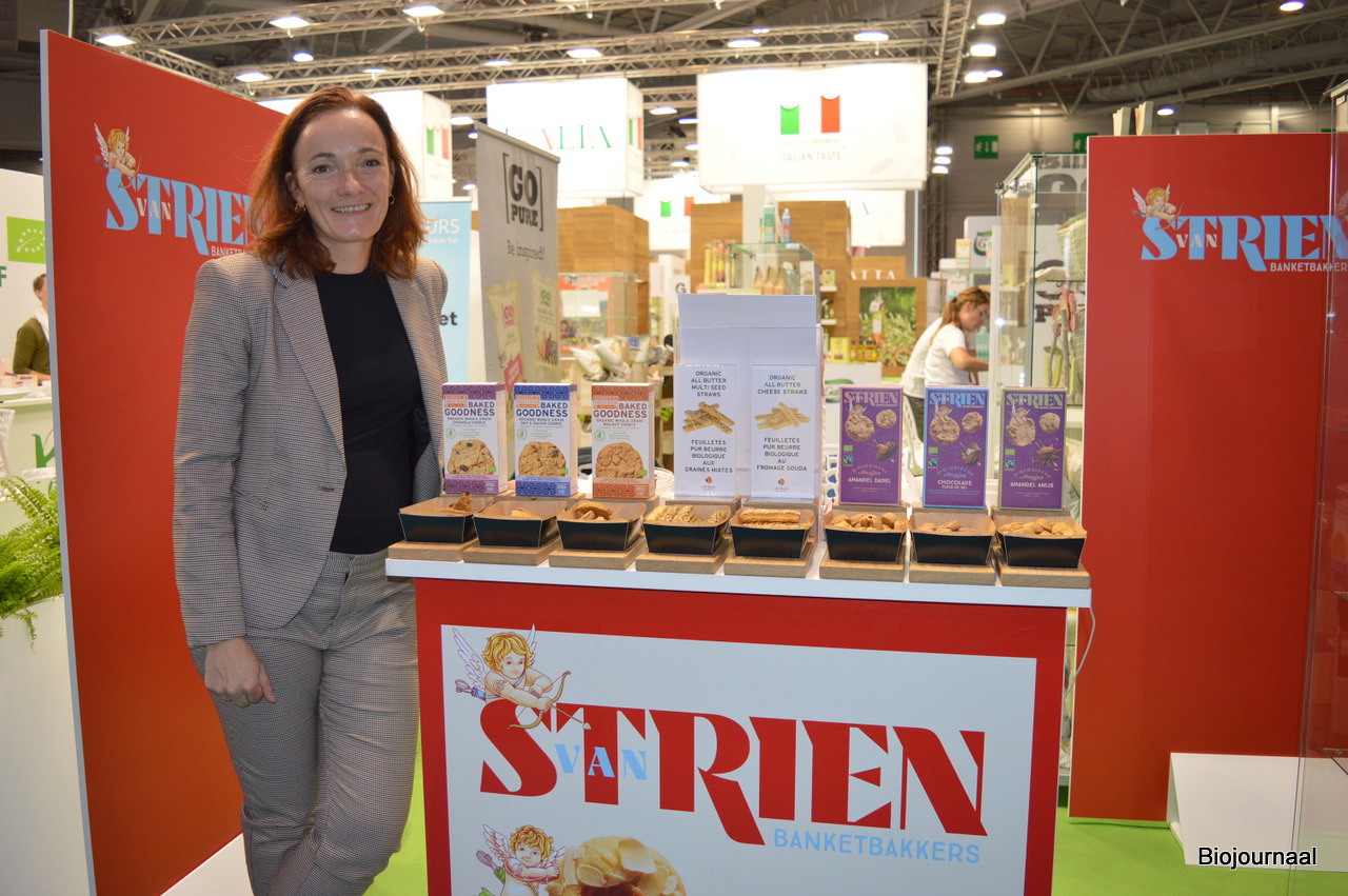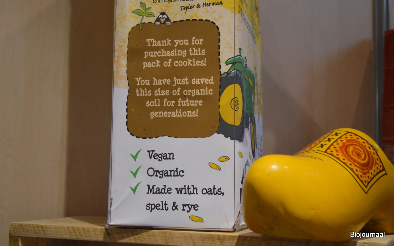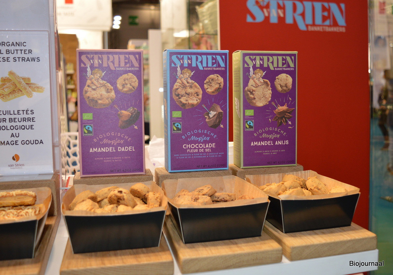 Els vertelde de bezoekers alles over deze nieuwe koekjes van Van Strien. Er zijn drie varianten van de biologische mopjes: Amandel Dadel, Chocolade en Amandel Anijs. Bijzonder is dat op de verpakking het Fairtrade aandeel vermeld staat. "De Chocolade-variant bevat zelfs 50% Fairtrade ingrediënten", aldus Els.