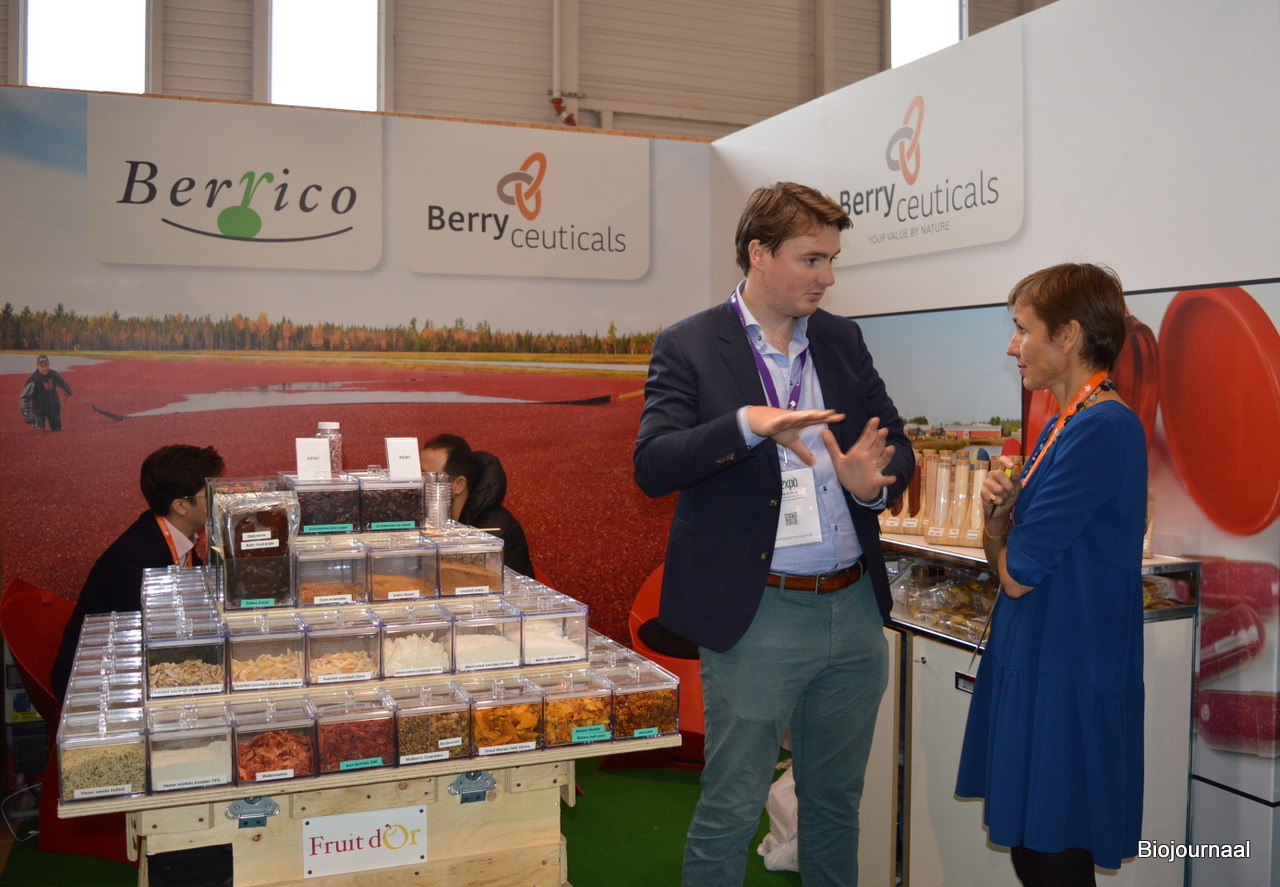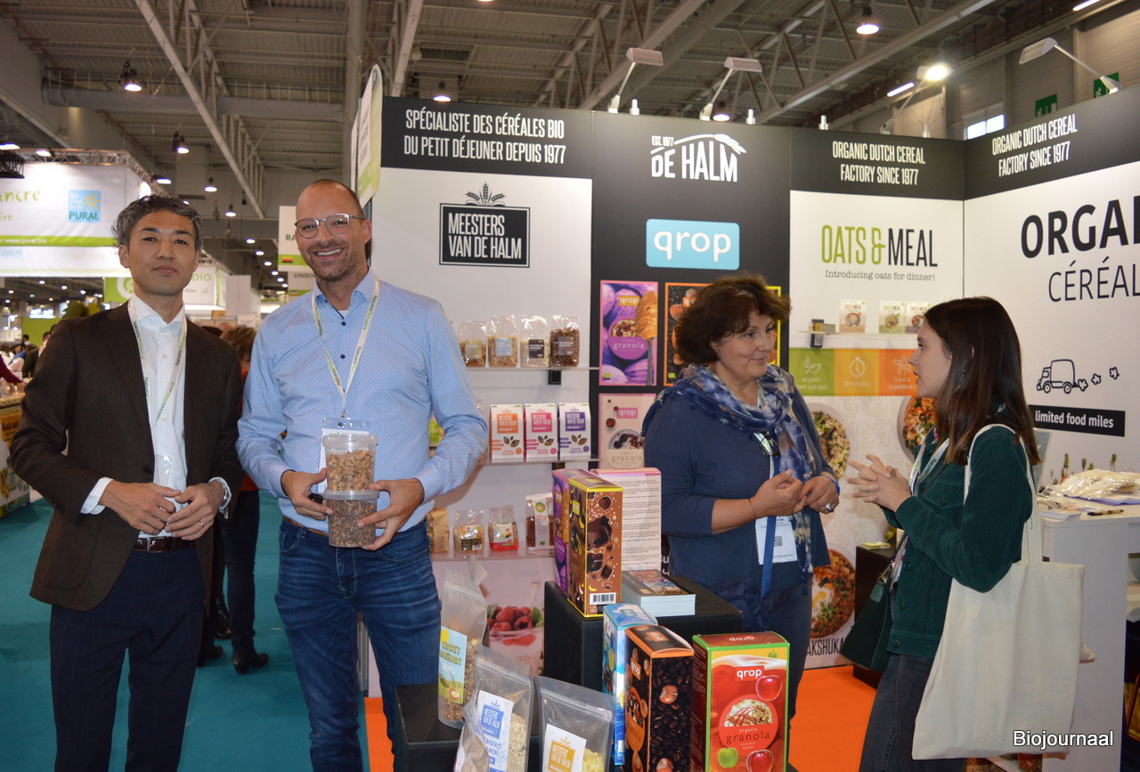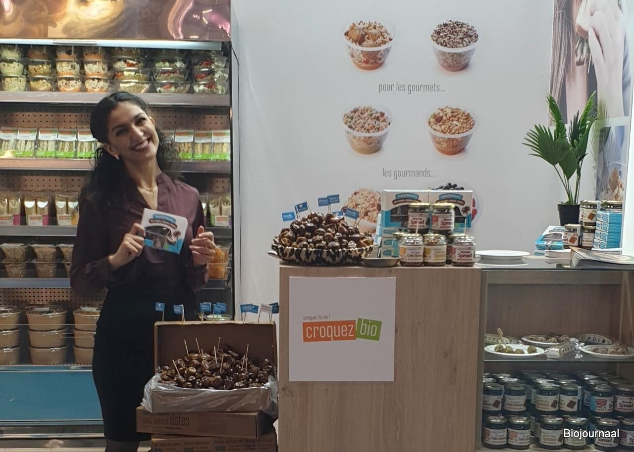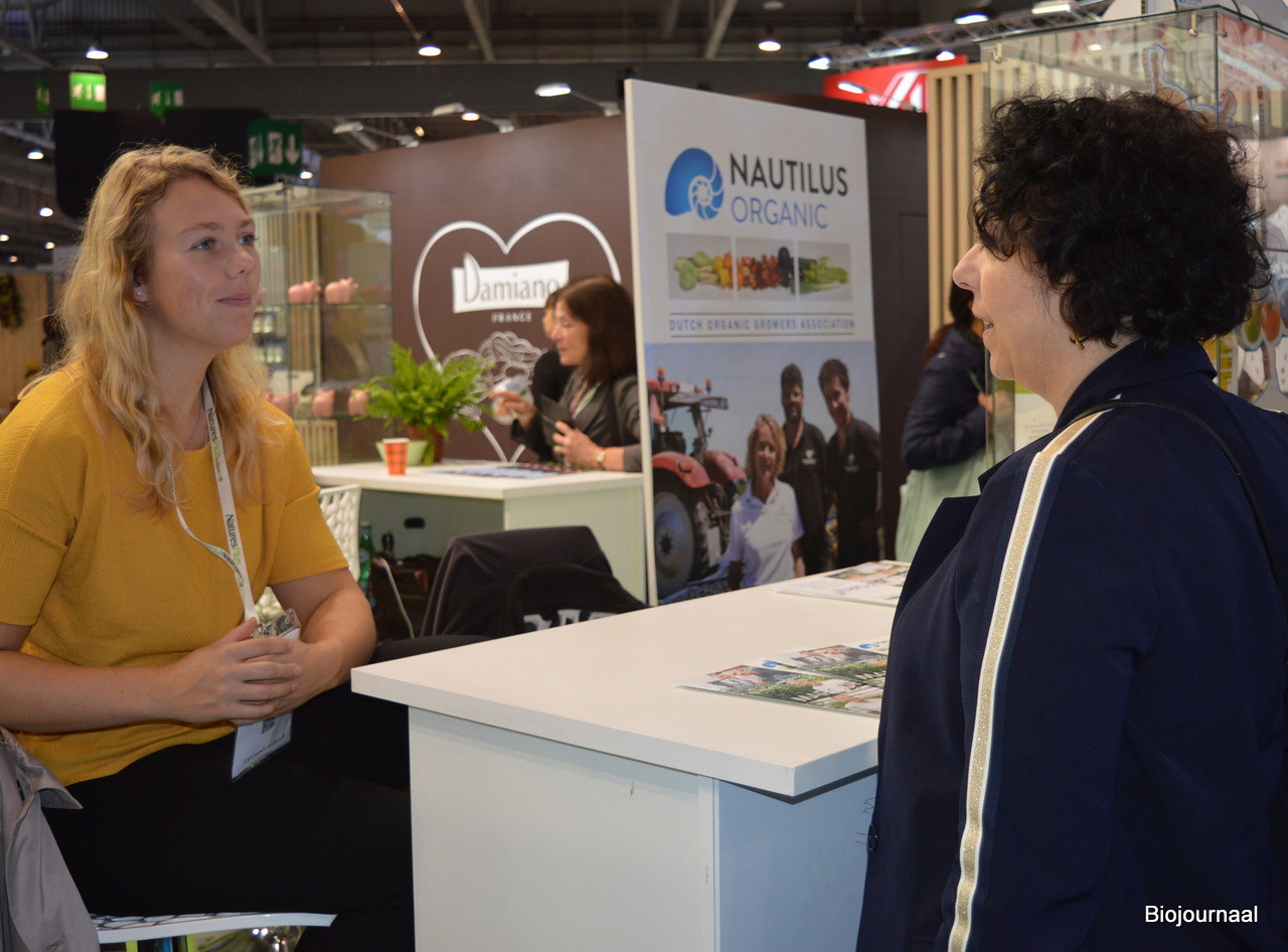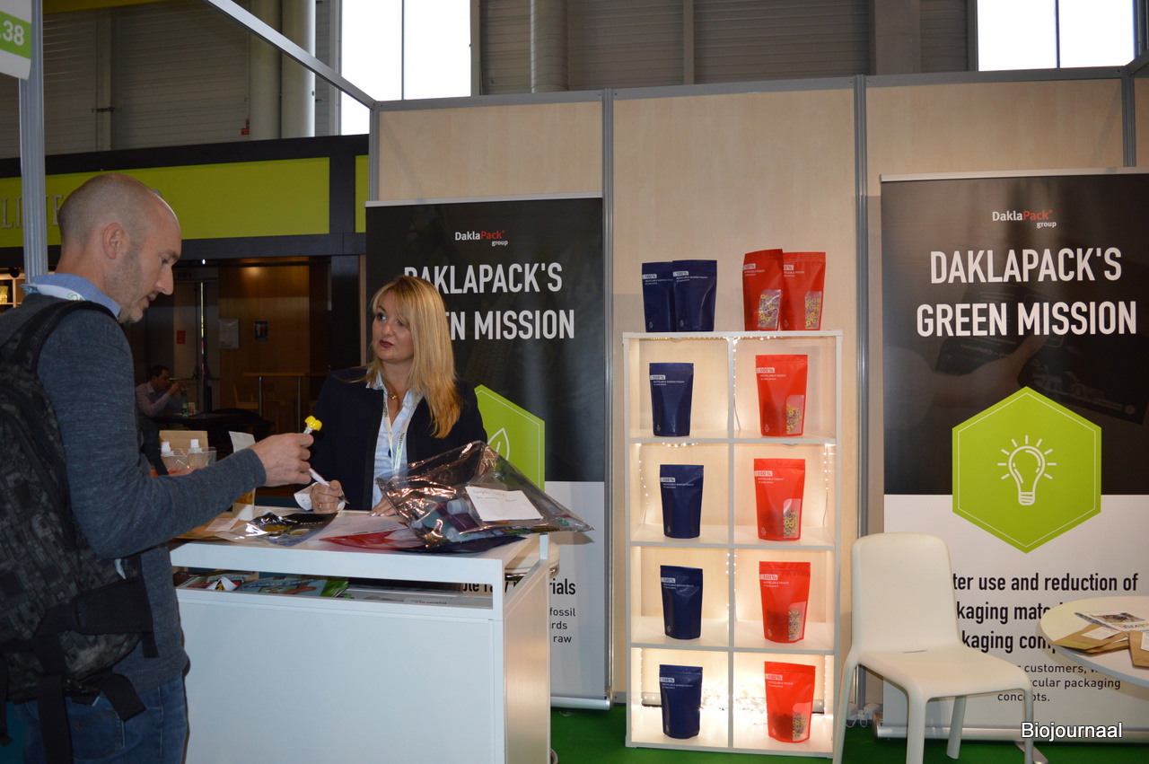 Els vertelde de bezoekers alles over deze nieuwe koekjes van Van Strien. Er zijn drie varianten van de biologische mopjes: Amandel Dadel, Chocolade en Amandel Anijs. Bijzonder is dat op de verpakking het Fairtrade aandeel vermeld staat. "De Chocolade-variant bevat zelfs 50% Fairtrade ingrediënten", aldus Els.