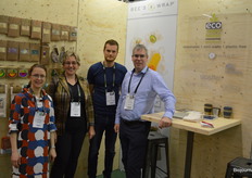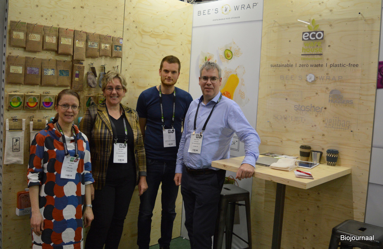 Suvi Hakala (eigenaar HR-living), Ellen Visser, Jim Blon (Bio Noord-Holland) en Johan Visser van Eco Warehouse. Op de Nordic Organic voor een zoektochy naar nieuwe detaillisten voor hun producten.
