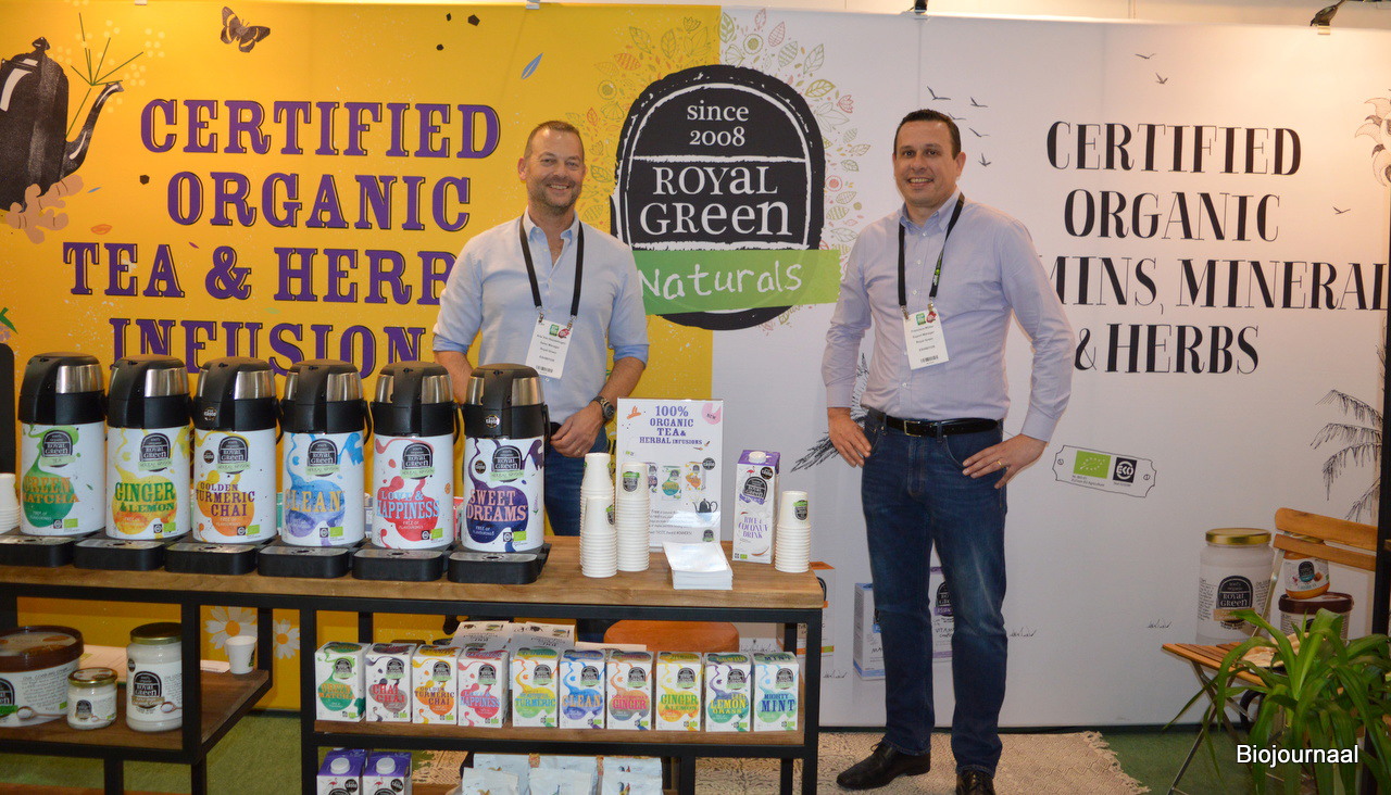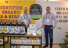 Arie van Houwelingen en Francisco Müller van Royal Green. Hebben een nieuwe thee lijn, die goed in picture gezet wordt op de beurs. De bezoekers hadden de mogelijkheid om de verschillende soorten thee the proeven.