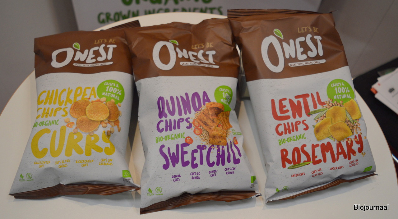 De healthy chips van O'nest, beschikbaar in drie verschillende smaken.