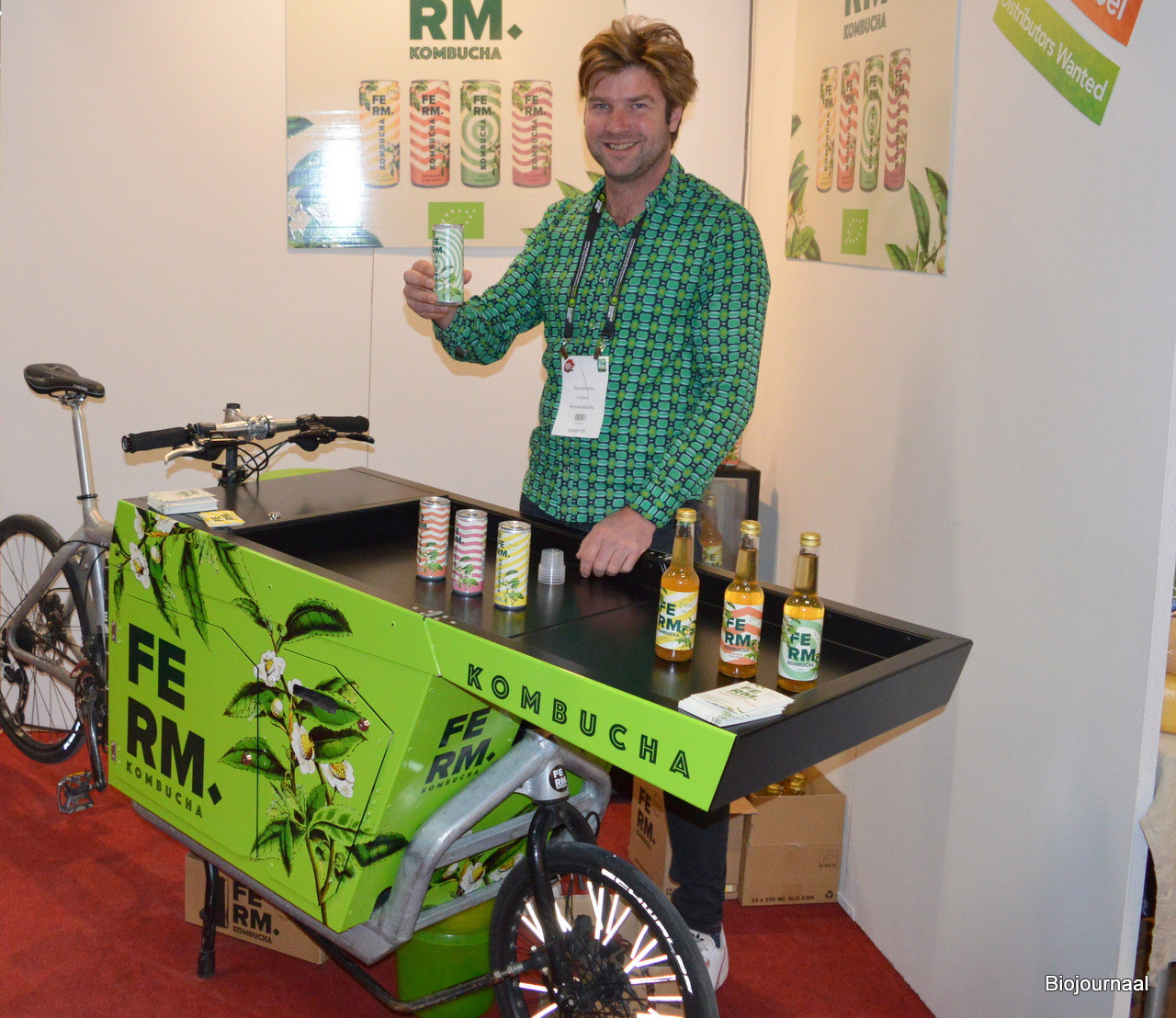 Pascal Déotte van FERM kombucha. Bieden de eerste kombucha in blik aan, dat niet gekoeld hoeft te worden.