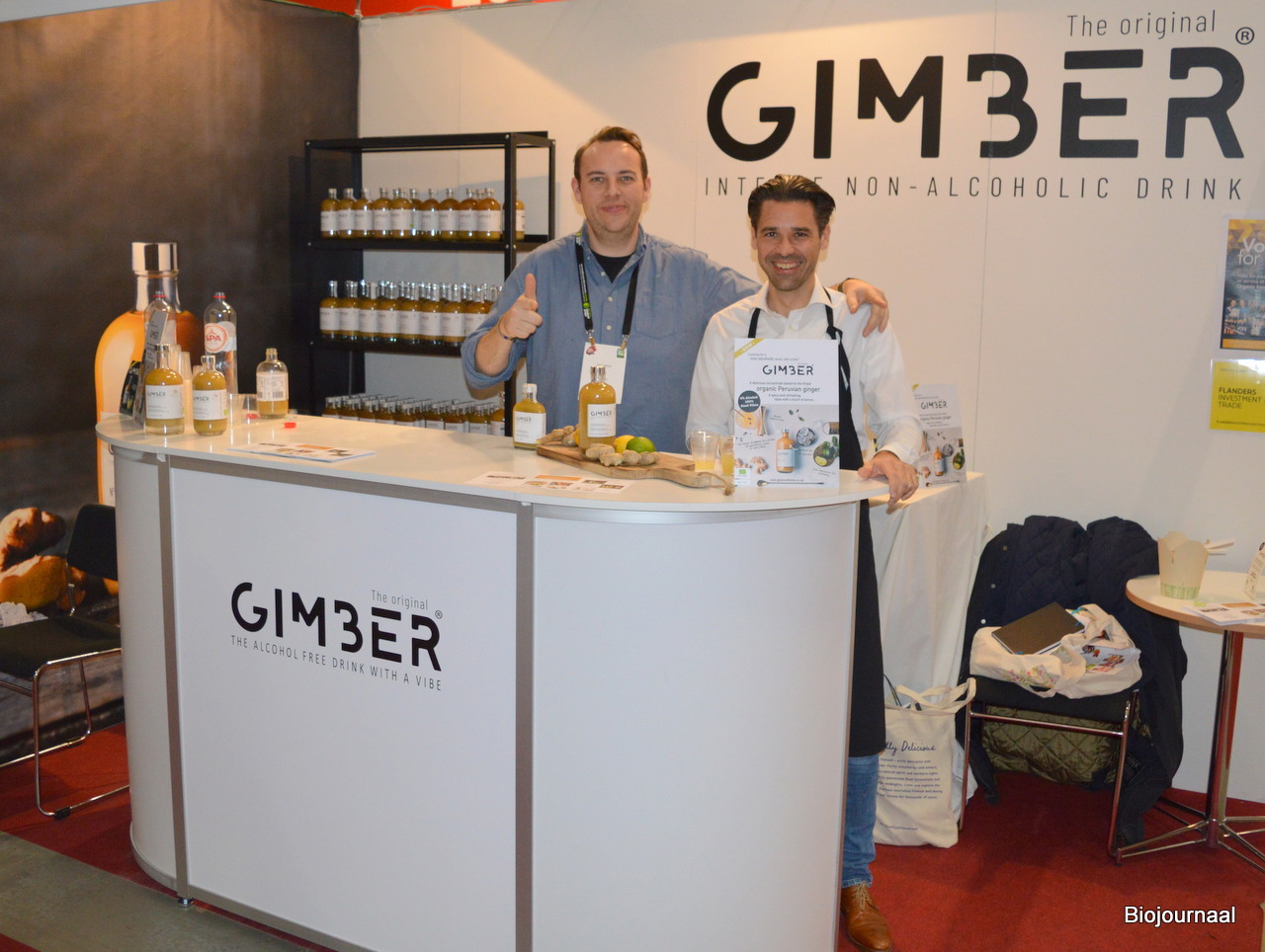 Jo Cuvelier en Jurgen Lanckriet van Gimber. Gimber biedt een alternatief voor alcoholische dranken. De gimber bestaat voor 40% uit pure gember.