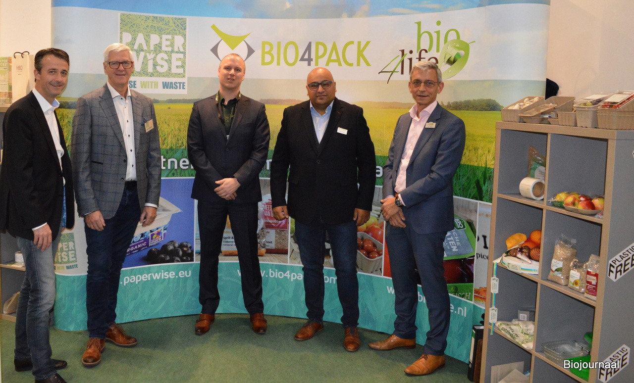 Nick Op den Bosch (PaperWise), Peter van Rosmalen (PaperWise), Jurriën Ros (Bio4Pack), Yasar Türkoglu (Bio4Pack) en Arjan Klapwijk (Bio4Life).