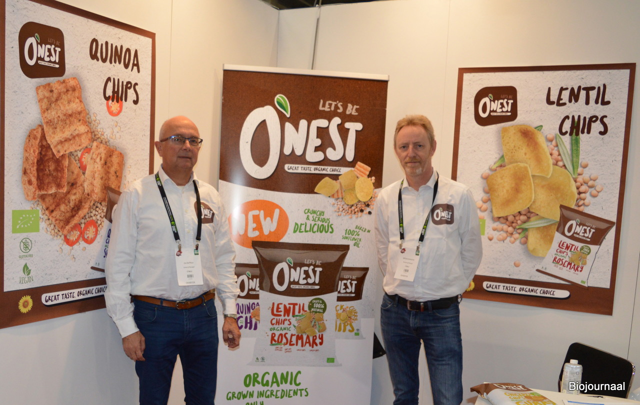 Jos de Moor en Willem de Kanter van O'nest. O’nest is een verantwoorder merk chips gemaakt van peulvruchten. De chips zijn biologisch, vegan, clean label, glutenvrij. Doel van O’nest is bij te dragen aan het verantwoorder snacken door de consument.