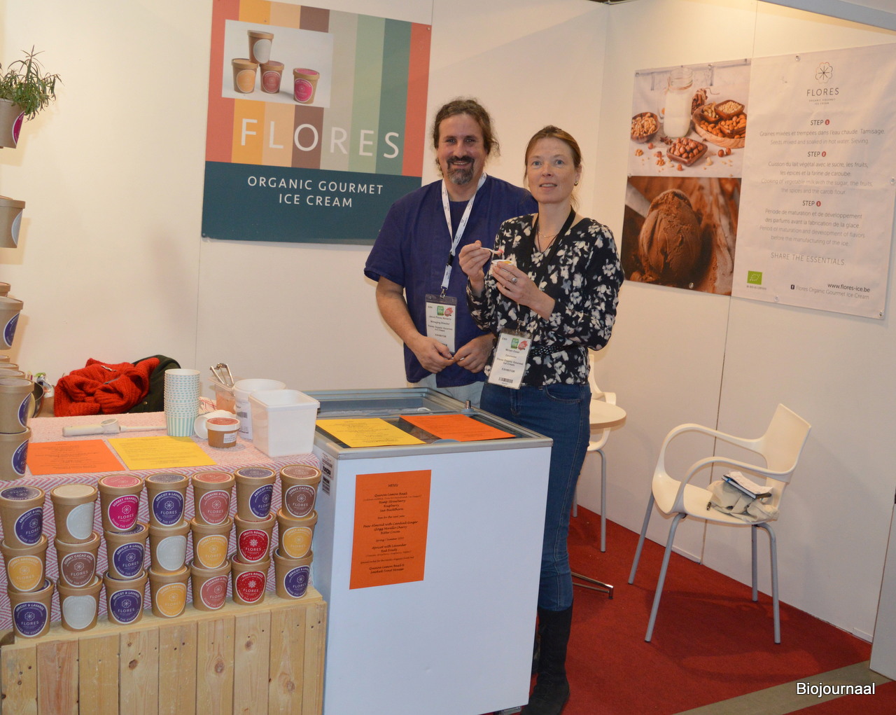Jesus Flores Navarro en Mirriam Esser van Flores organic gourmet ice cream. Willen hun totale biologische ijs assortiment ook op de Scandinavische markt aanbieden.