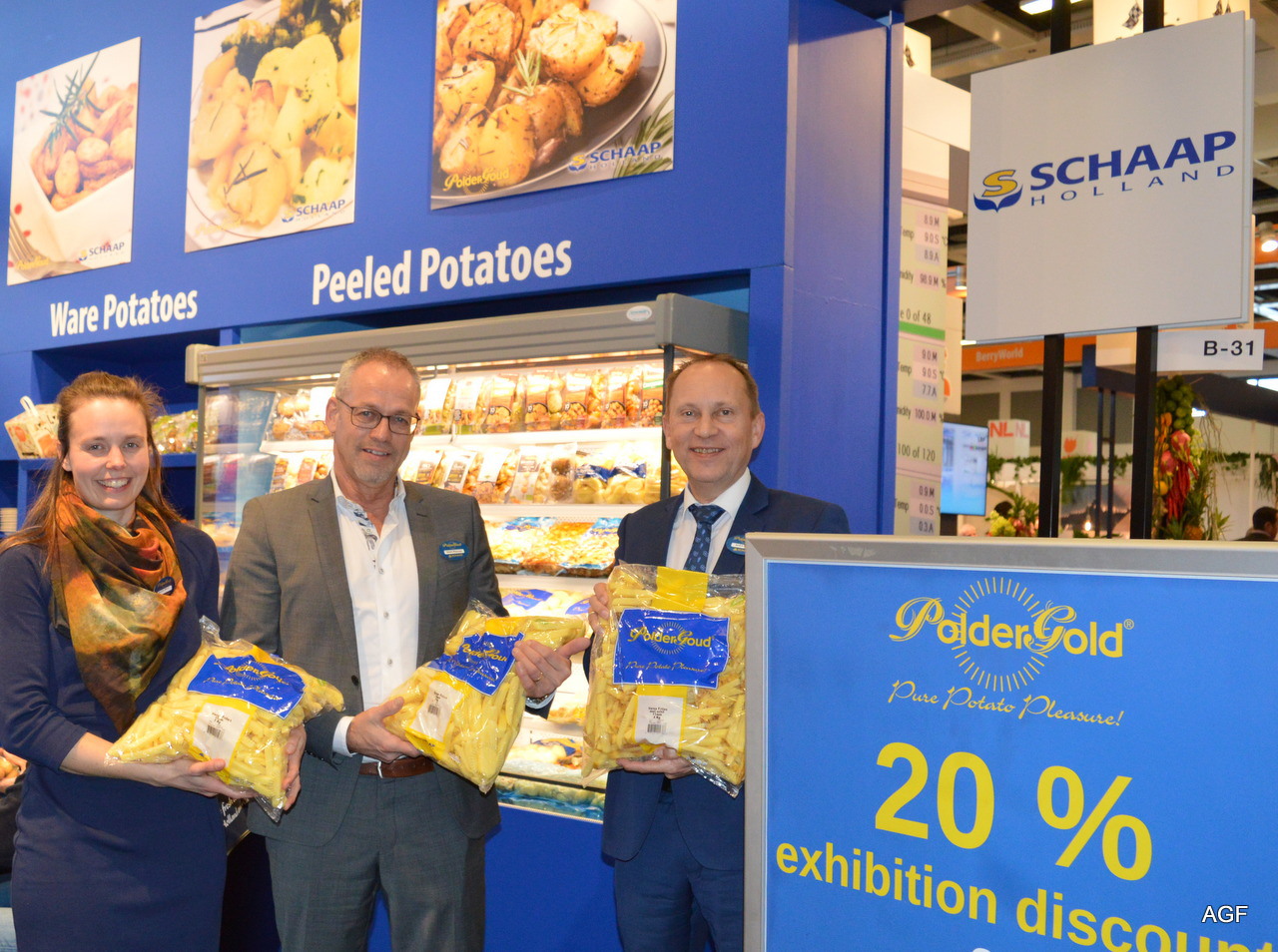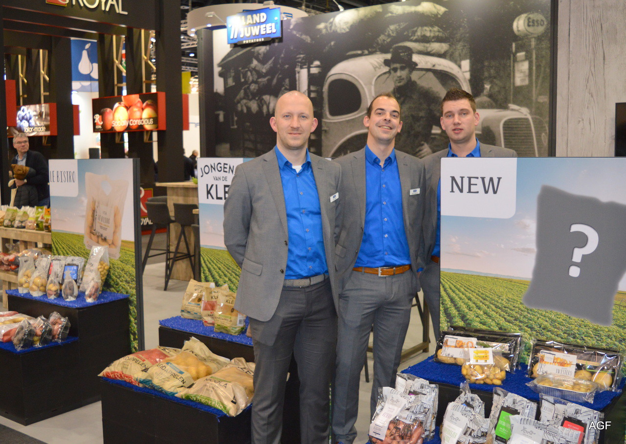 Moniek Wisse, Geert Klaessen en André Adamse van Schaap Holland. Nieuw zijn de bio sous vide producten en bioblokjes met schil en leverbaar in verschillende smaken.