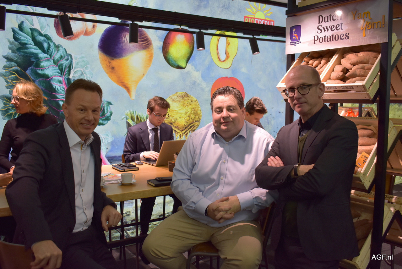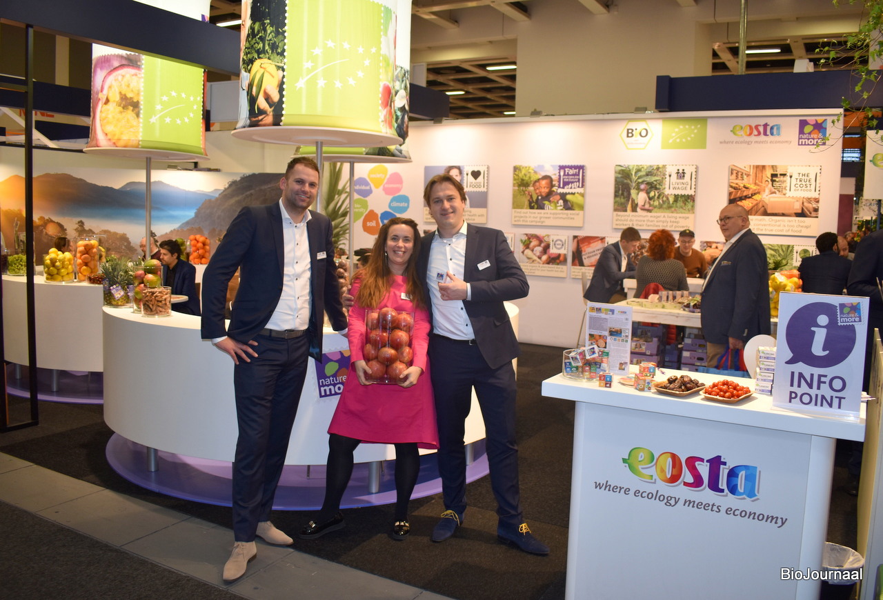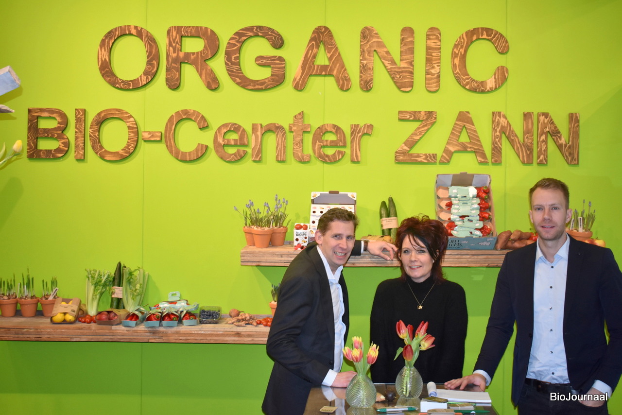 Mike Legerstee, Alexandra Hameau en Sander Dijkstra van Eosta. ‘’De afzet van bio-producten stijgt steeds meer in de gangbare Retail’’, aldus Sander.