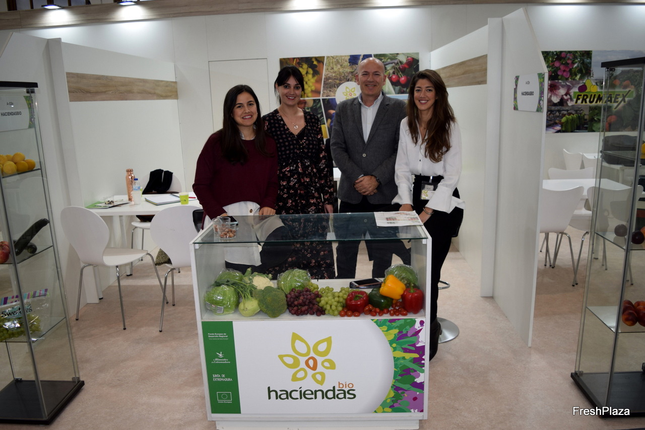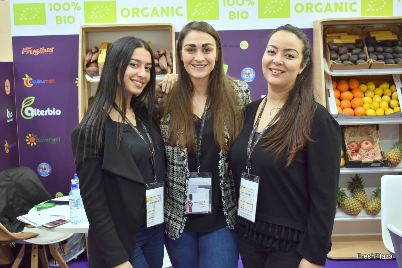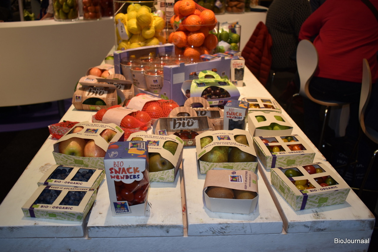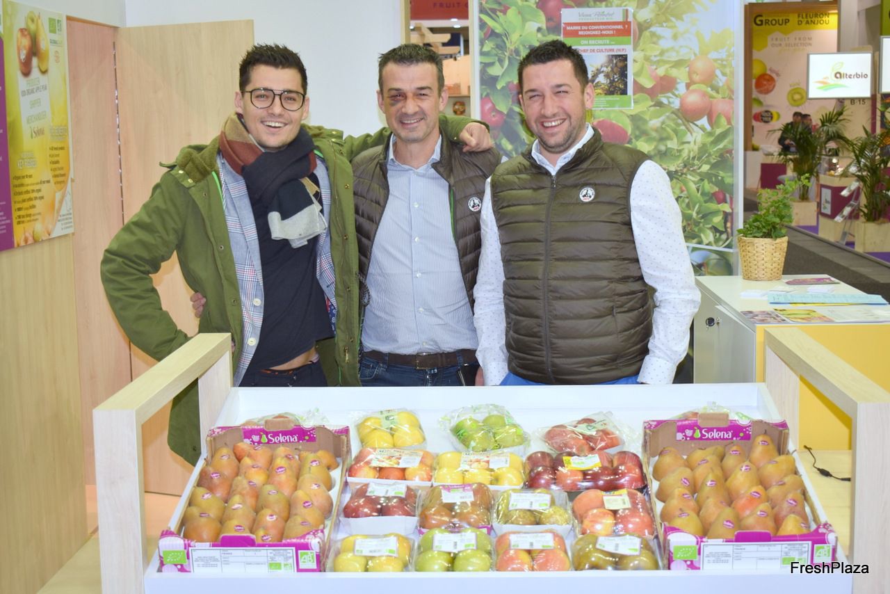 Robert, Nathalie en Casper van Elshof Organic Fruit. Hadden onder andere het eigen merk Belle Bio op de stand staan.
