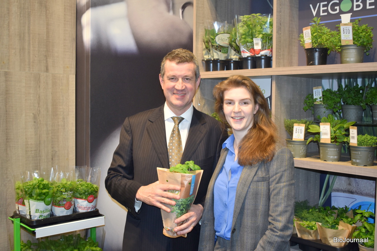 Steven en Isabel Lauwers van Vegobel. Bio geteeld basilicum en momenteel veel aandacht voor het ontwerpen van duurzame verpakkingen.