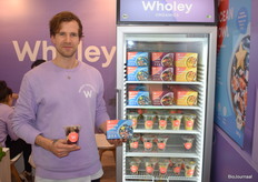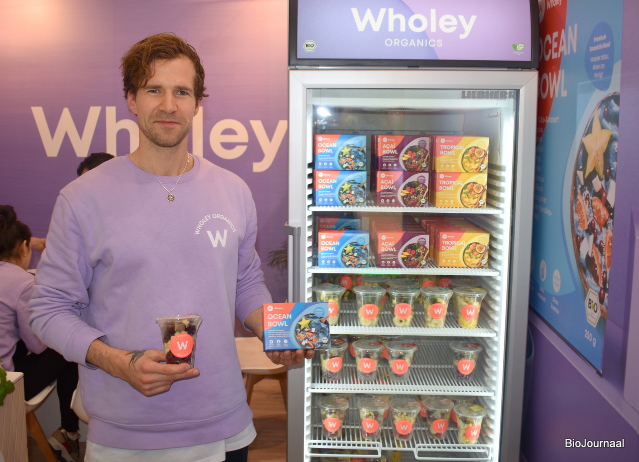 Clemens Schulze van Wholey poseert met biologische smoothie en bowl. De gezonde producten worden door veel top teams in heel Europa gebruikt, waaronder voetbalclub Bayer München.