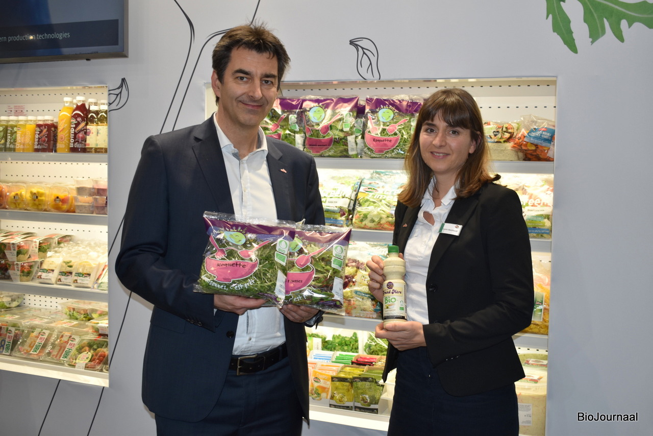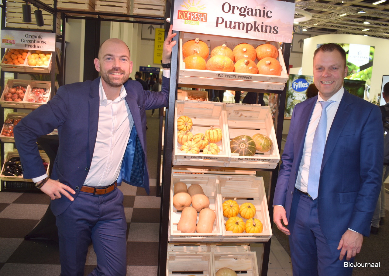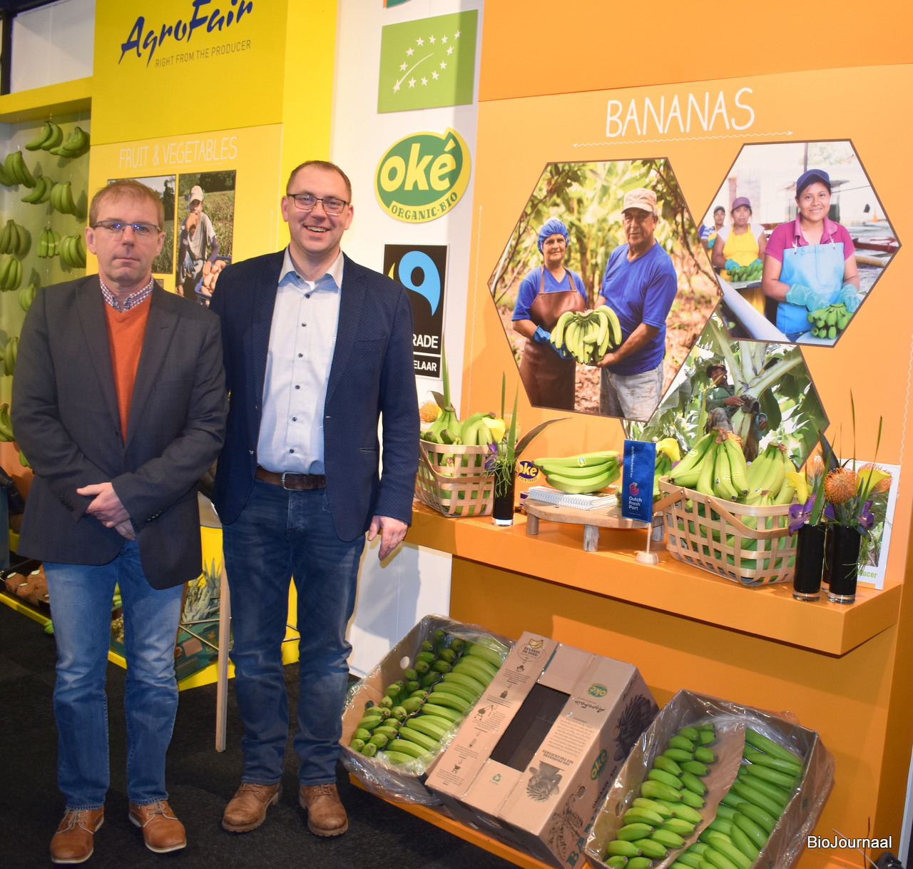 Geert Demijeren en Julian Arnts van Agrofair. Het assortiment bedraagt ongeveer 60% uit biologische producten. Demeter bananen geïmporteerd uit Zuid-Amerika doen het momenteel erg goed in Duitsland.