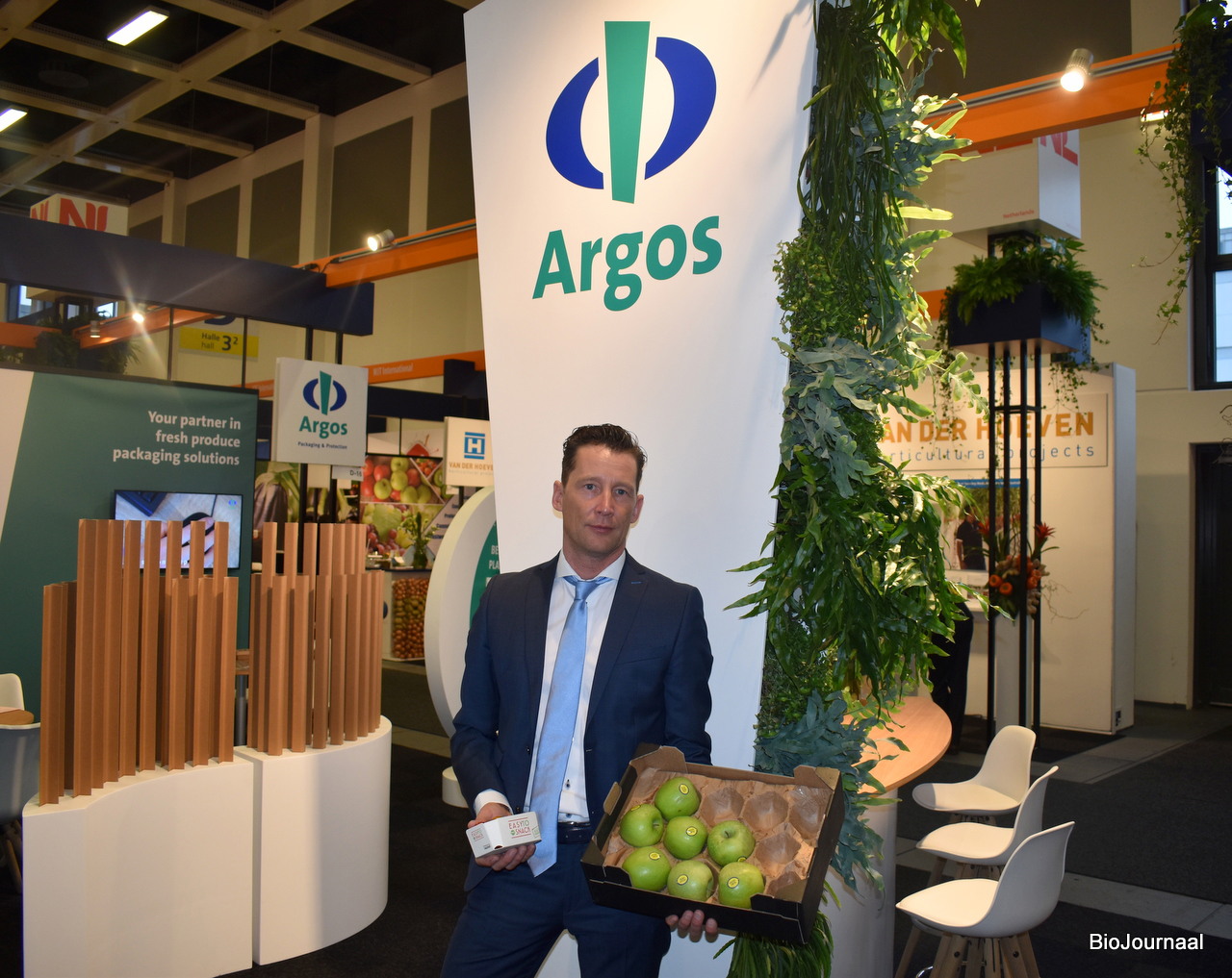 Met een opvallende pilaar werden ook de biologische mogelijkheden bij de Greenery op de stand getoond.