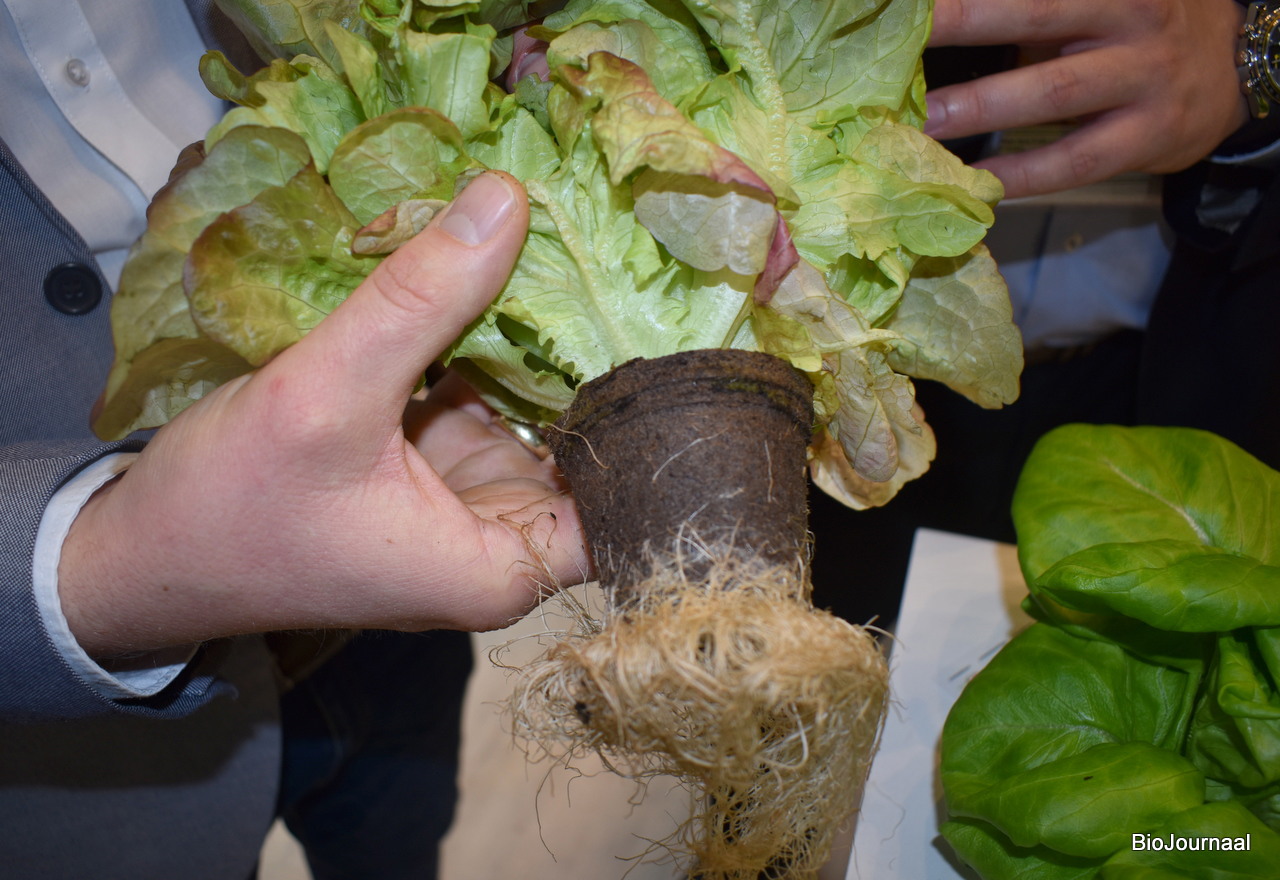 Duurzame oplossing van SVI. De buitenste laag is biologisch afbreekbaar en kan na verwijderen van de plant in de grond blijven zitten.
