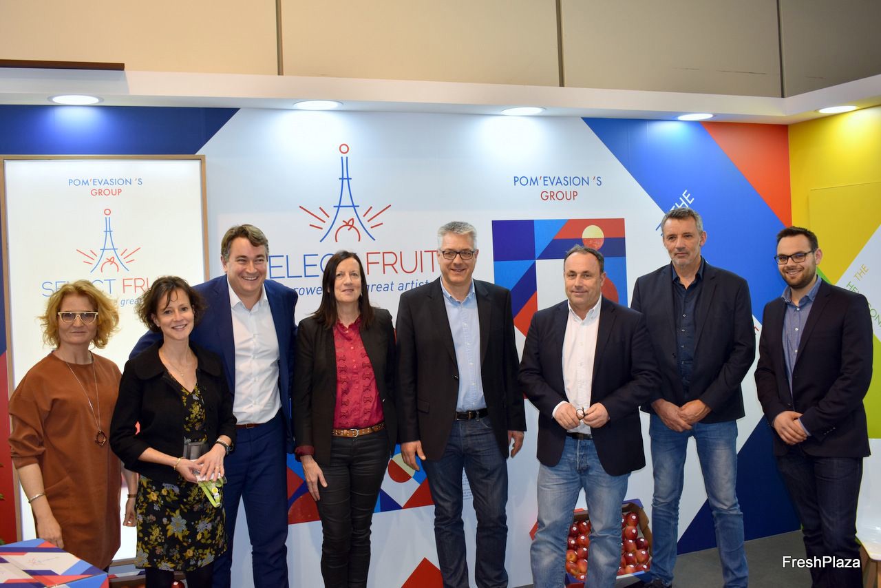 De teams van Pom'Evasion en Select Fruit (exportfiliaal) waren aanwezig voor het promoten van Franse appels. Ook presenteerden zij hun nieuwe logo en verpakkingen.