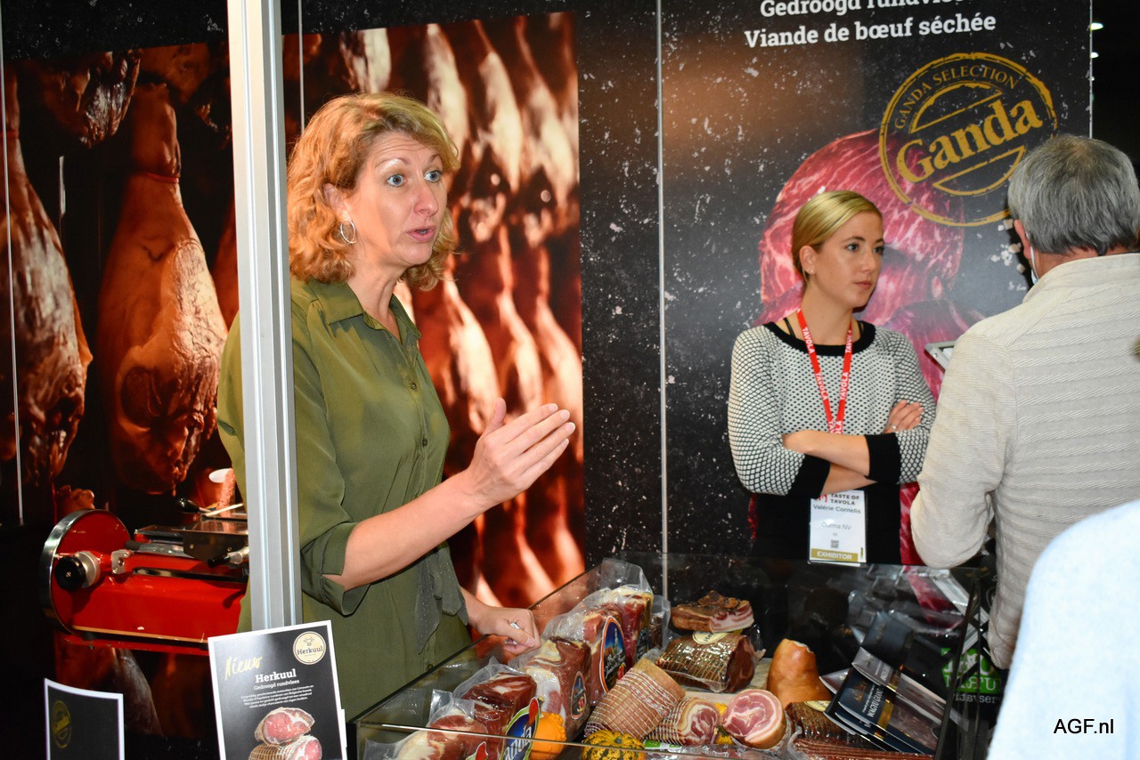 "Smaak staat op nummer één bij Ganda Fine Foods", zegt eigenaar Dirk Cornelis. De producent van ambachtelijke hammen en kazen gaat terug naar puur met zo min mogelijk toevoegingen. "Het beste product is een puur en natuurlijk product." In eerste instantie was Ganda producent van hammen, maar een aantal jaar terug is met de overname van Le Larry biologische geitenkaas aan het assortiment toegevoegd. Op de foto staat links Eva Heuvink en rechts de dochter van Dirk, Valerie Cornelis.