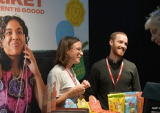 De stand van Amazonia Vegan Foods, met de aanstekelijk enthousiaste Delphine Gryp en Cloe Vanhoutten. Het van oorsprong Australische bedrijf is gespecialiseerd in organic, vegan voeding en maakt enthousiast gebruik van gezonde en lekkere superfoods. Delphine is pas gestart met de verdeling in de Benelux, maar producten van Amazonia Vegan Foods worden al gretig afgenomen in Australia, de VS en Zuid-Europa.