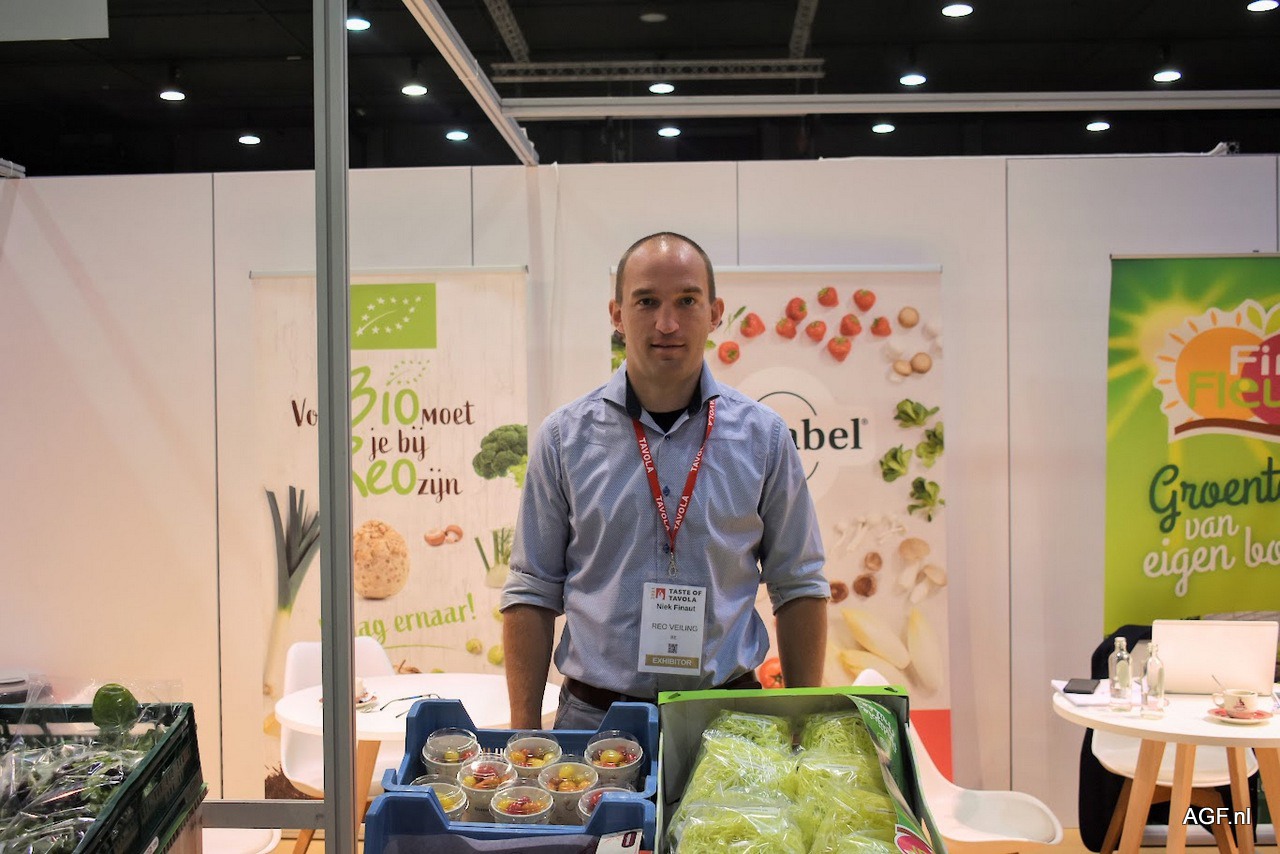 Niek Finaut bracht biologische groenten mee naar de stand van REO Veiling.