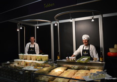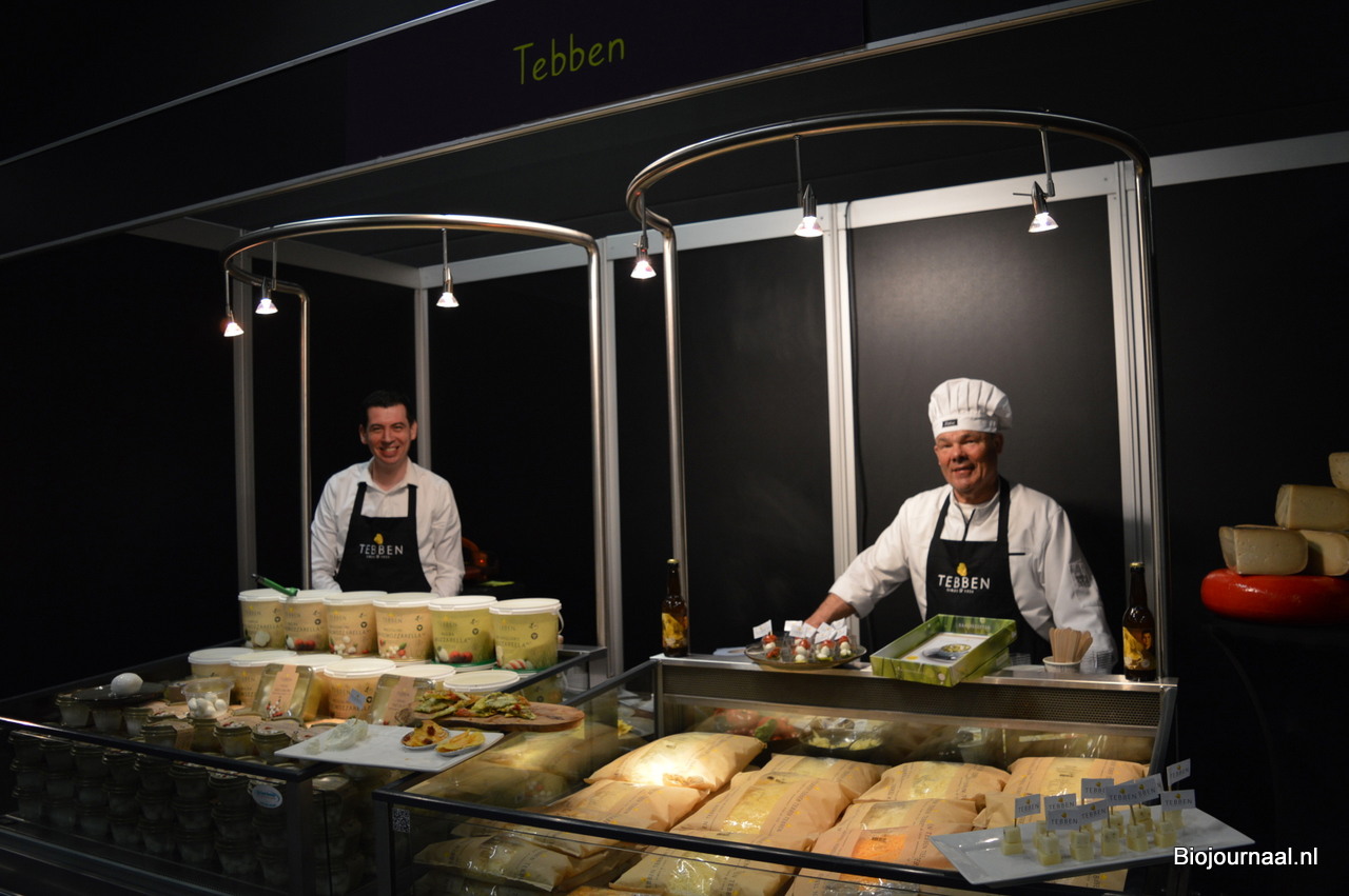 Sjaak Tebben en Harry Joosten lieten proeven van de kazen van Tebben. Sjaak: "We bieden biologische kaassnippers aan."