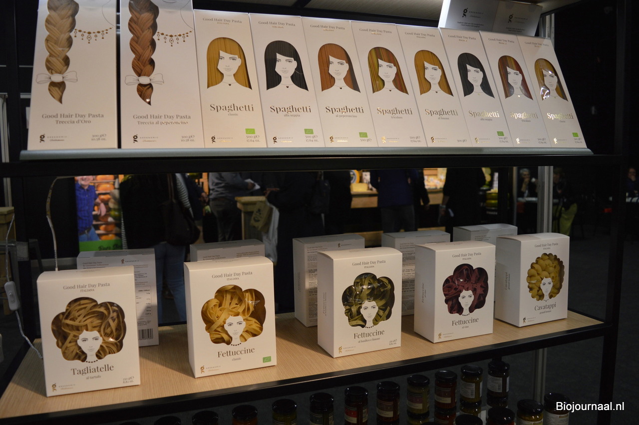 Het Duitse bedrijf Greenomic had net als eind september de biologische 'Good Hair Day Pasta' bij. Het originele design maakt deze pasta tot ware eyecatchers.