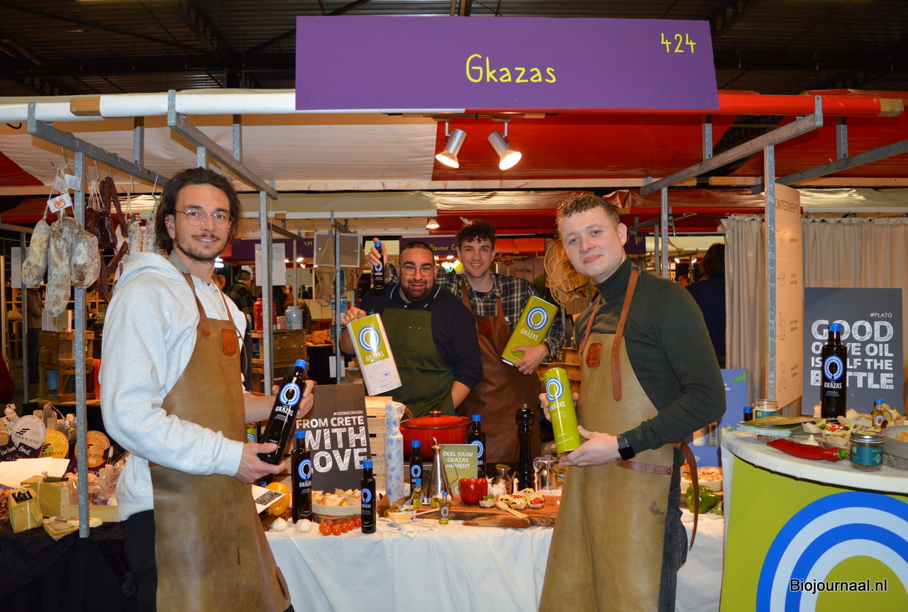 Proeven van Gkazas Olijfolie kon bij Floris Reurts (links) en zijn collega's Jeremy, Noah en Ian. Floris: "We hebben een nieuwe abonnementsvorm."
