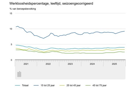 Werkloosheid toegenomen in 2025, lager dan in meeste EU-landen